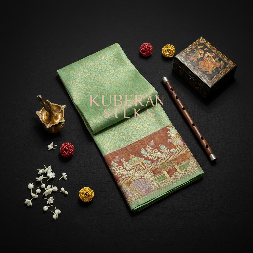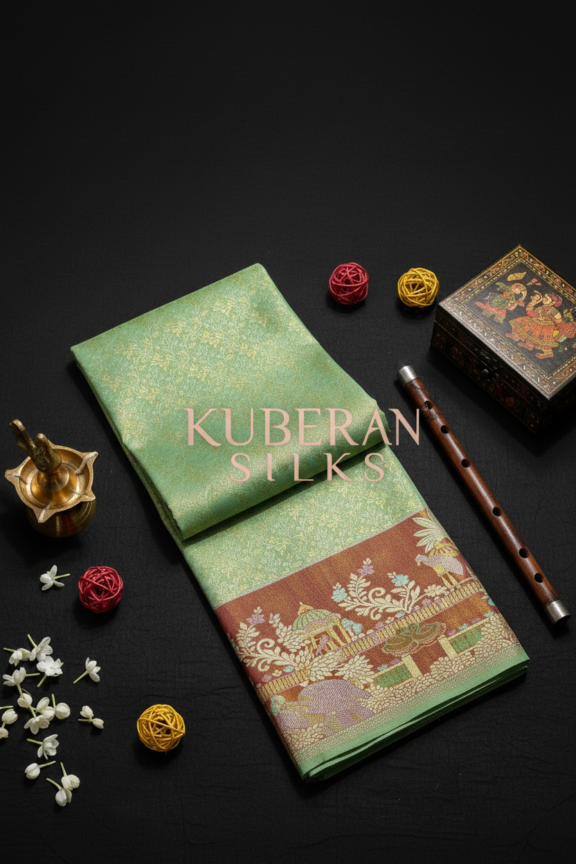 KUBERAN LIGHT GREEN AND ORANGE RED PATTU