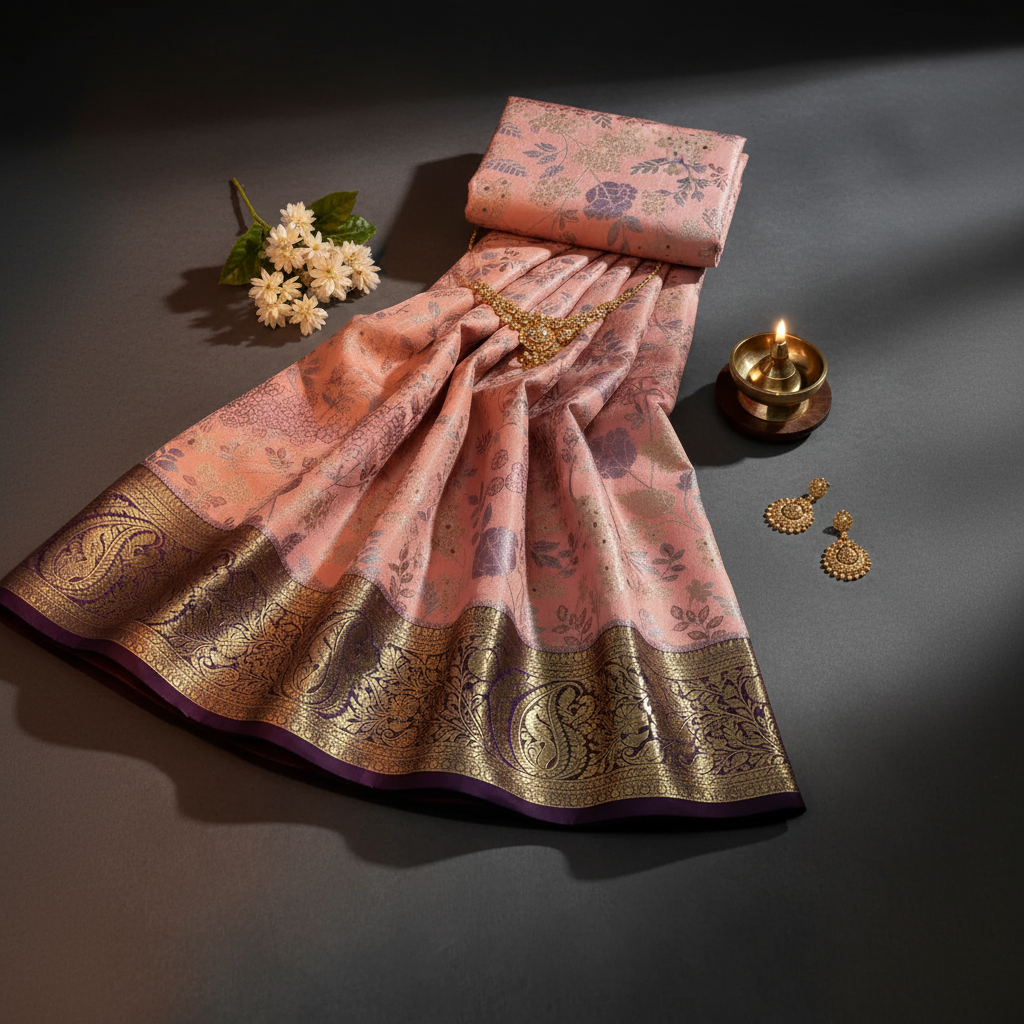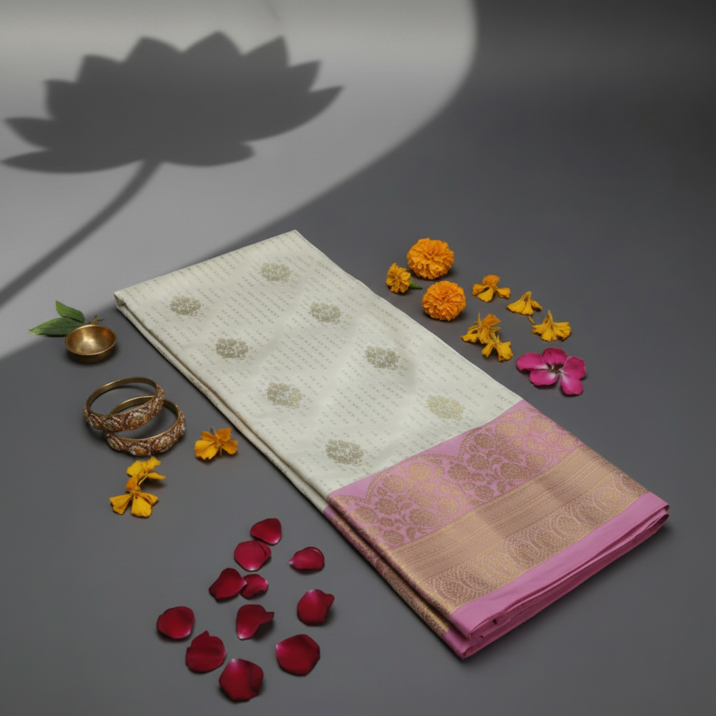 KUBERAN PINK AND BEIGE PATTU