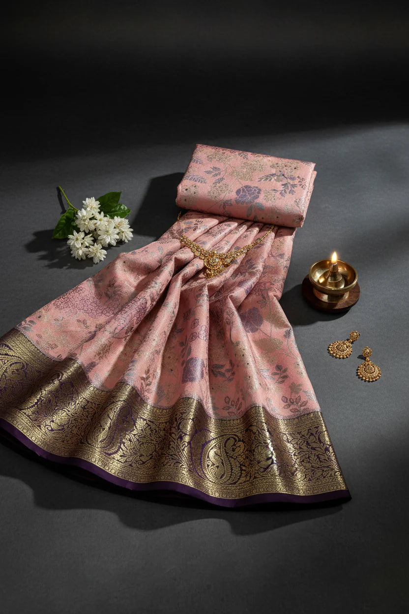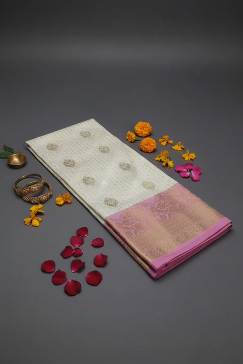 KUBERAN PURE SILK CREAM WITH BABY PINK BORDER PAVADAI