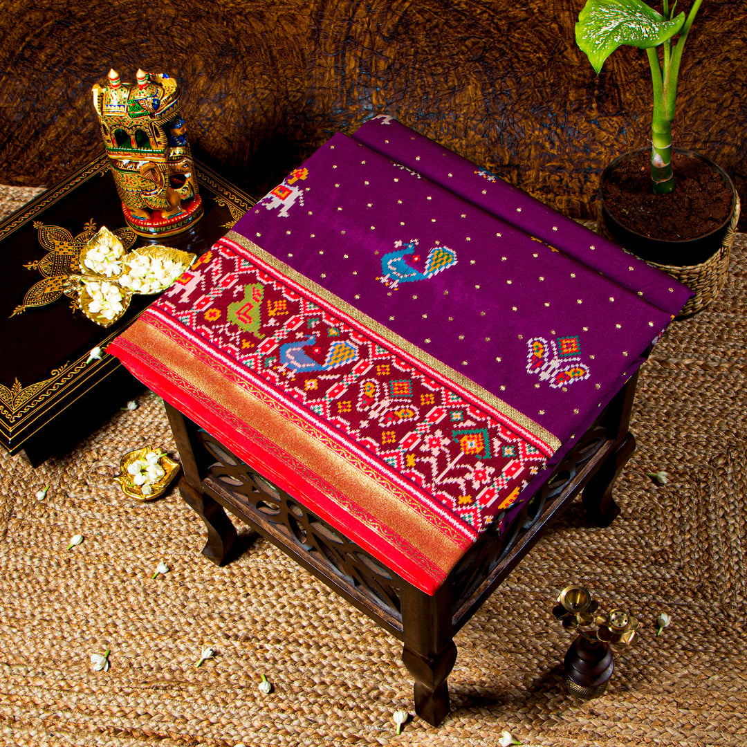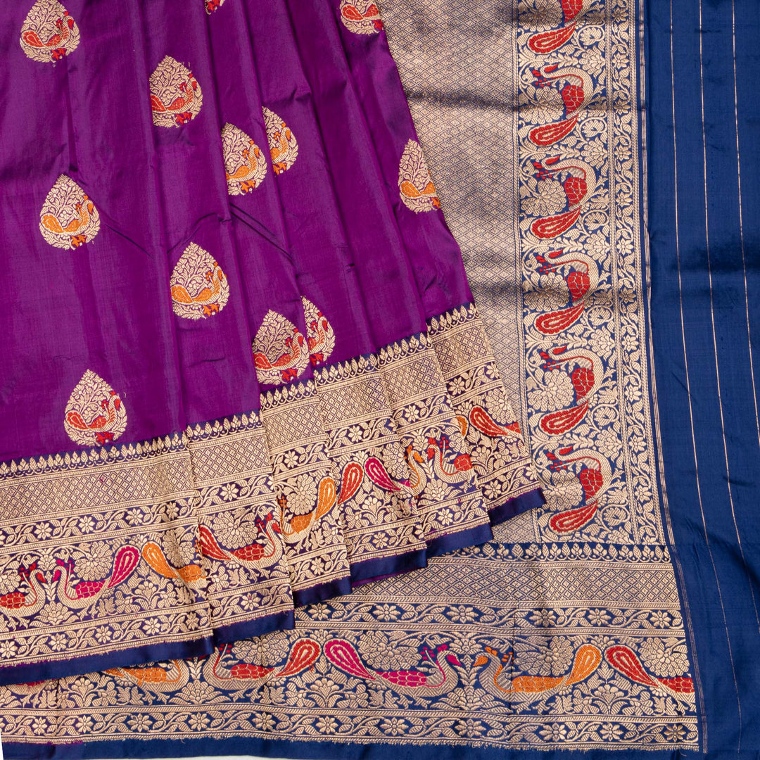 Kuberan Purple With Red Border Banarasi Silk Saree