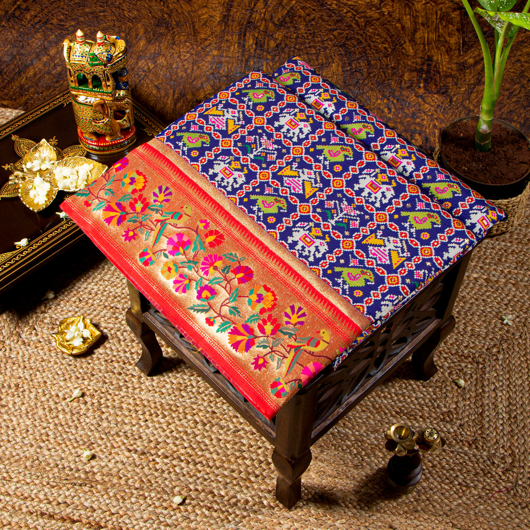 Kuberan Blue With Pink Border Banarasi Silk Saree