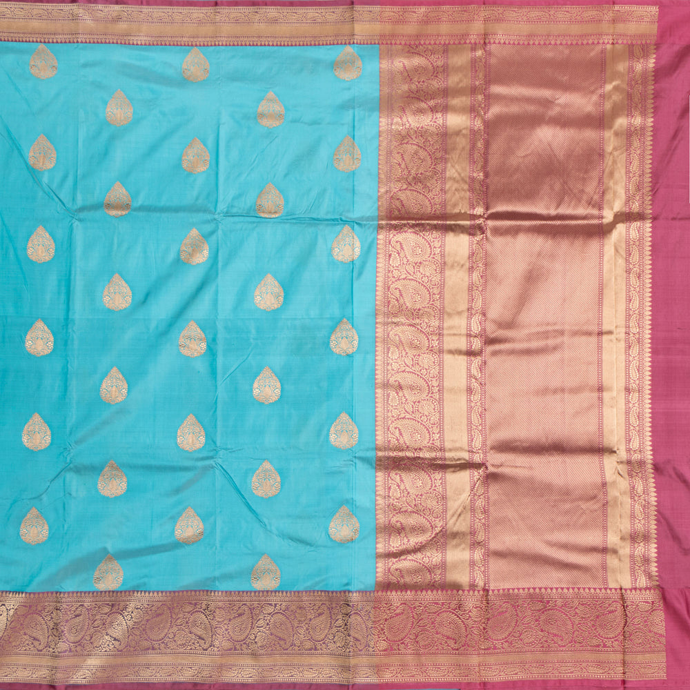 Kuberan Turquoise With Pink Border Banarasi Silk Saree