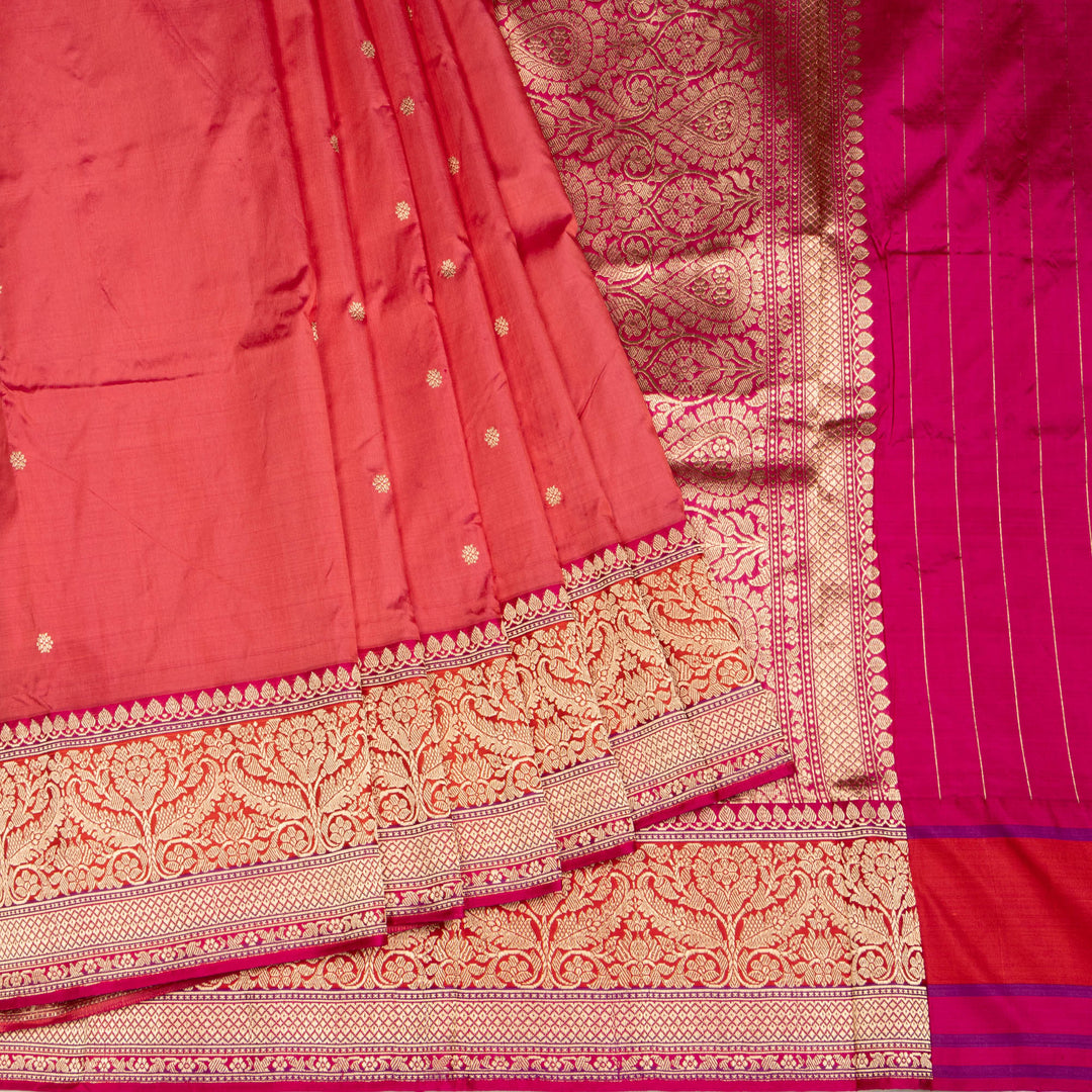 Kuberan Peach With Pink Border Banarasi Silk Saree