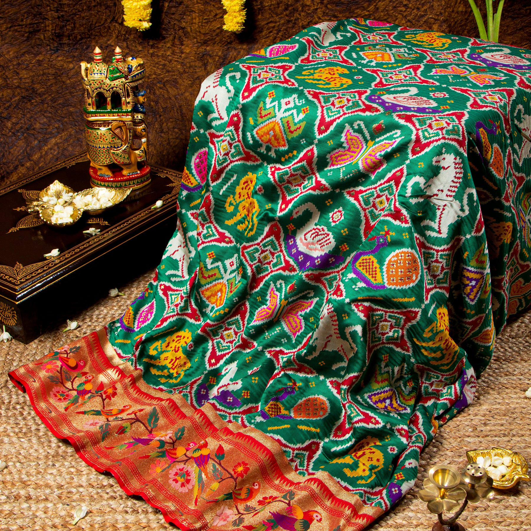 Kuberan Bottle Green Paithani Patola saree