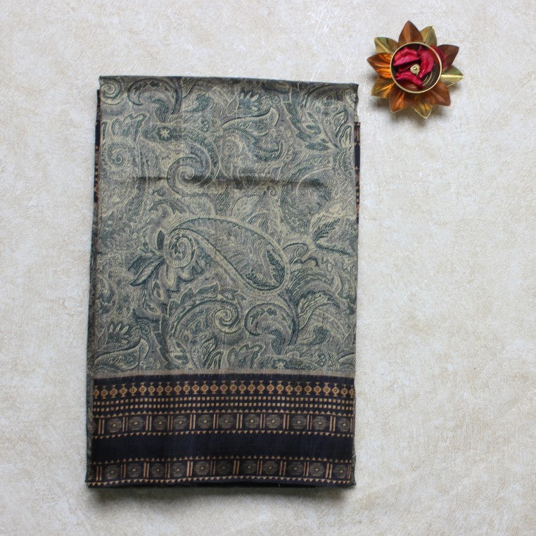 Kuberan Elephant Grey Raw Silk Printed Saree