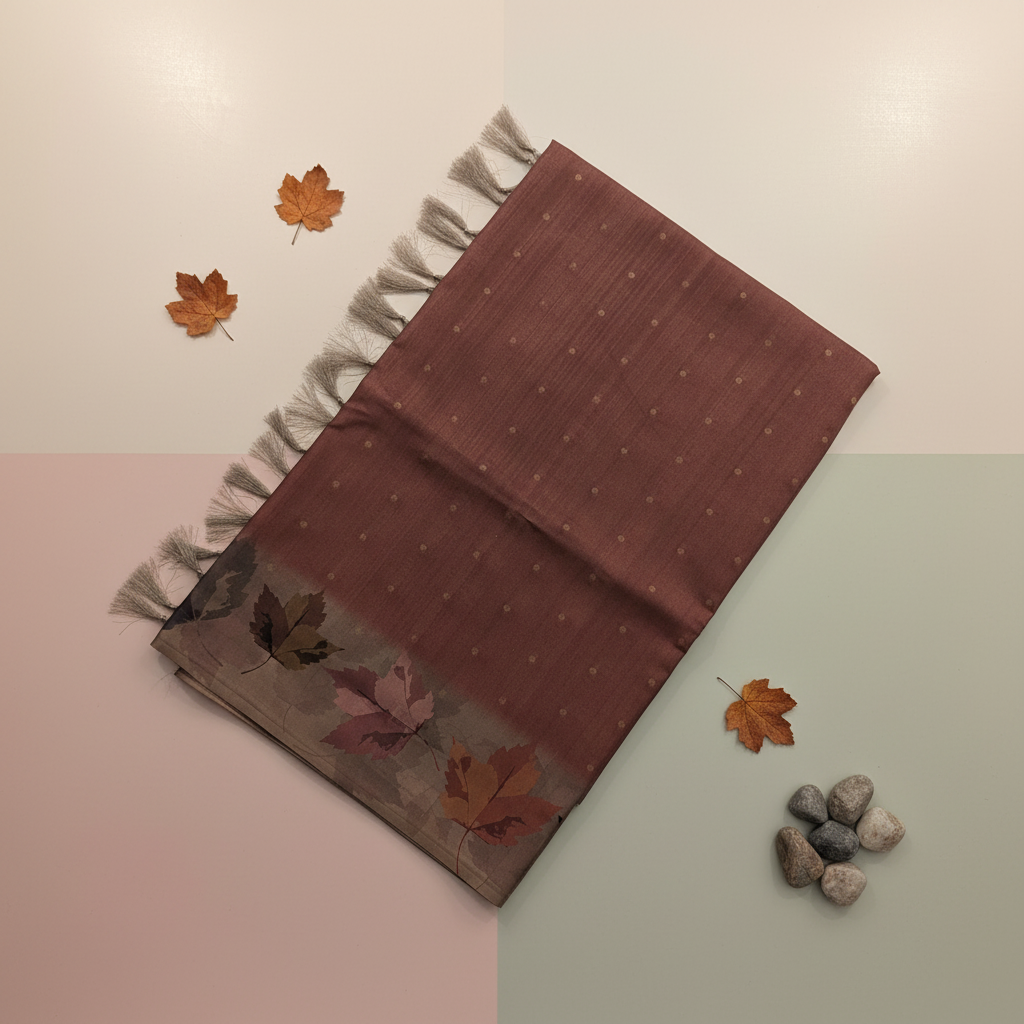 KUBERAN RUST BROWN SEMI TUSSAR SILK SAREE