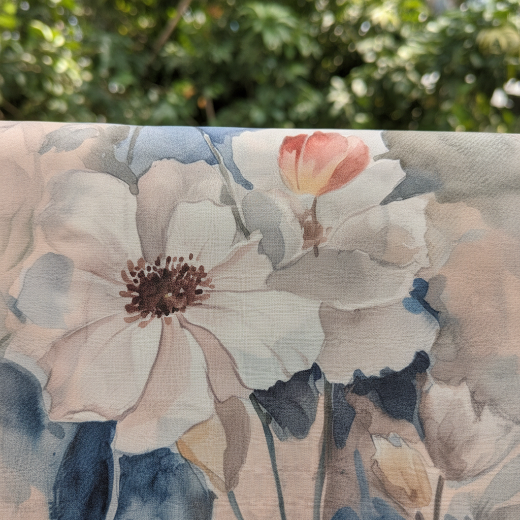 - Artistic watercolor floral print with white flowers and blue-grey leaves