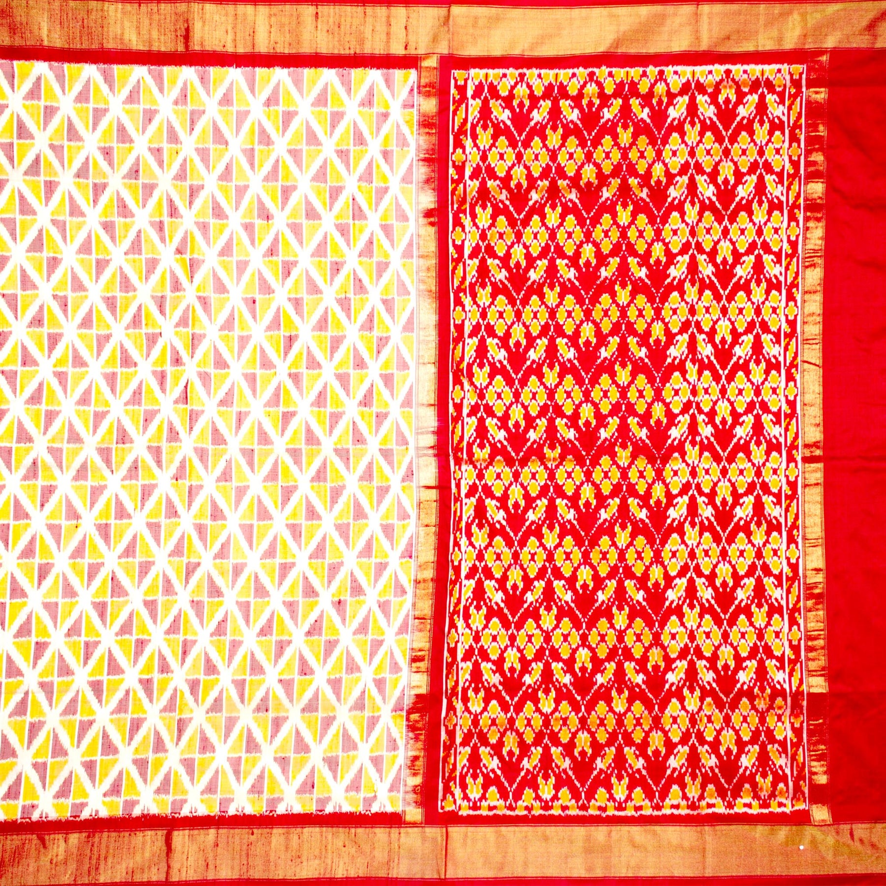 Hey!!! grab this beautiful Pochampally silk saree from the house of KUBERAN. This contrast zari handloom saree perfectly suits all the occasions and parties. This designer pallu and the border with a unique artwork of motifs give a perfect rich look to the wearer. This saree is complimented with an unstitched designer blouse, SILK MARK authenticated.
