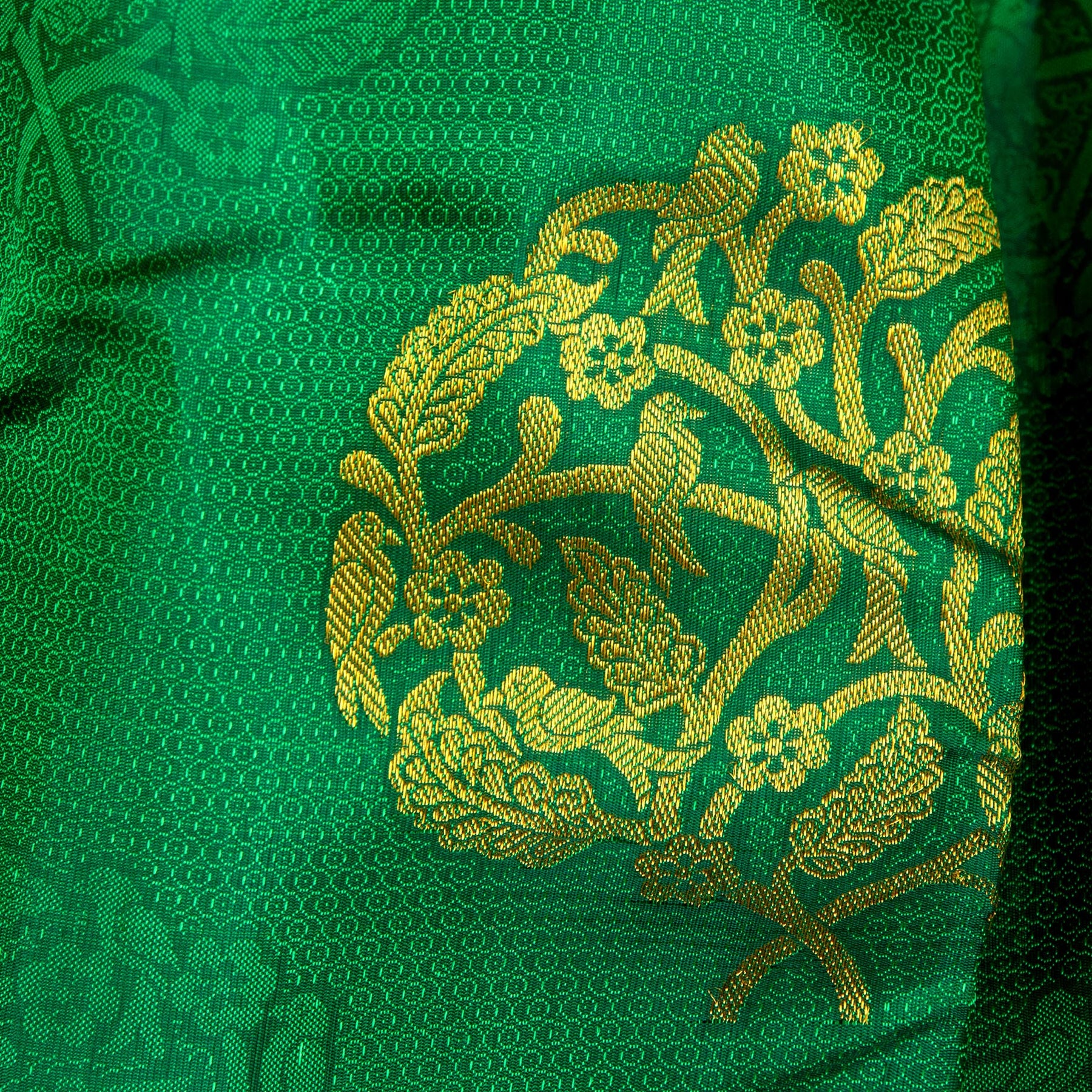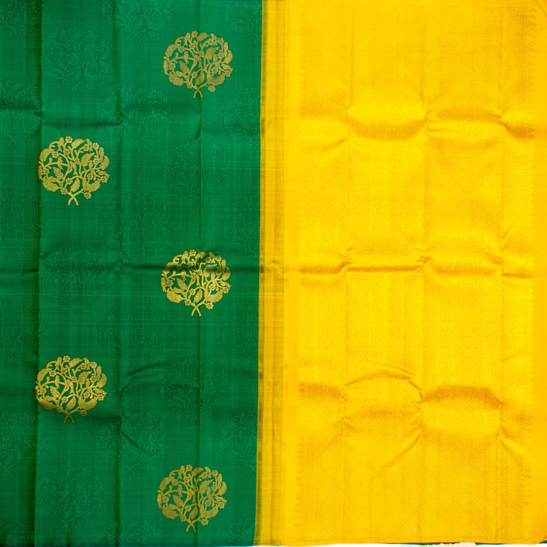 Kuberan Dark Green Yellow Kanchivaram Silk Saree