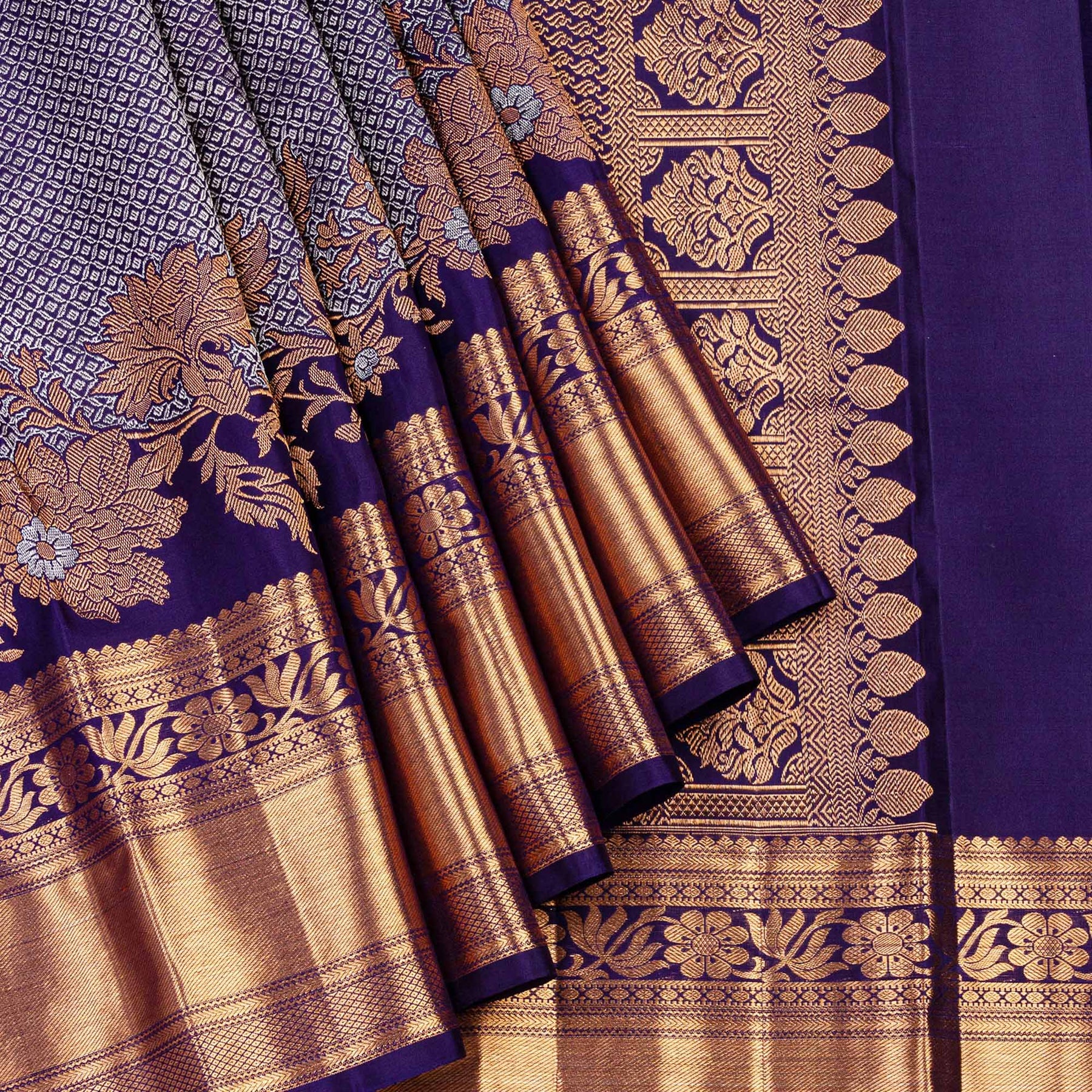 Kuberan Grey Navy Blue Kanchipuram Silk Saree