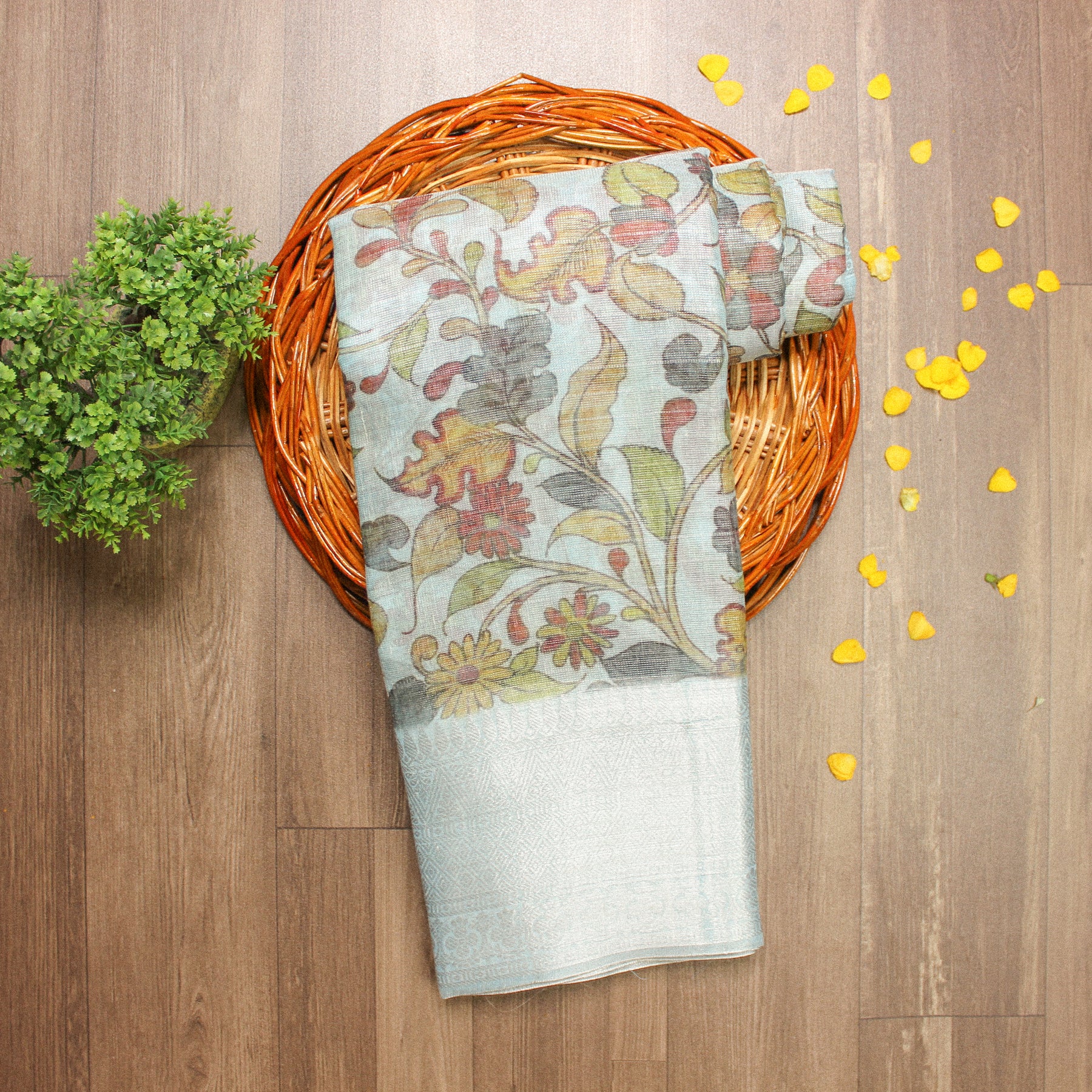 Hey!!!! Grab the latest collections of this exclusive linen saree from the house of kuberan. This saree is weaved with a Design motif and pastel colour which will boost for all the occasions. This is complemented with an unstitched blouse.