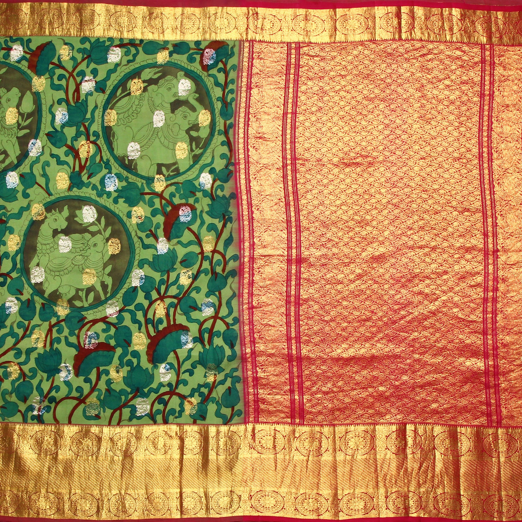 Kuberan Light Green Kalamkari Kanchipuram Silk Saree