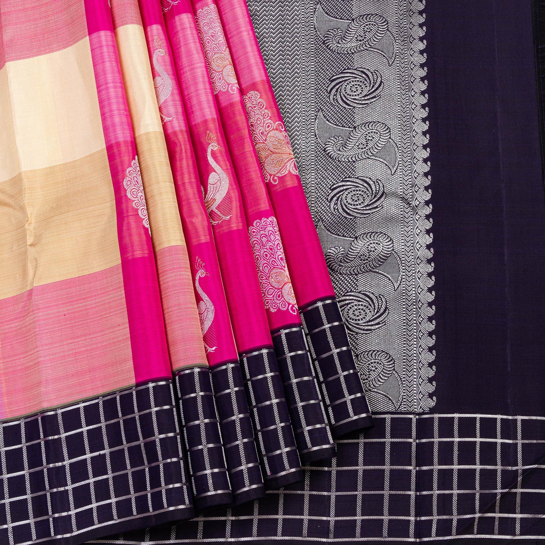 Kuberan Navy Blue Pink Kanchivaram Silk Saree