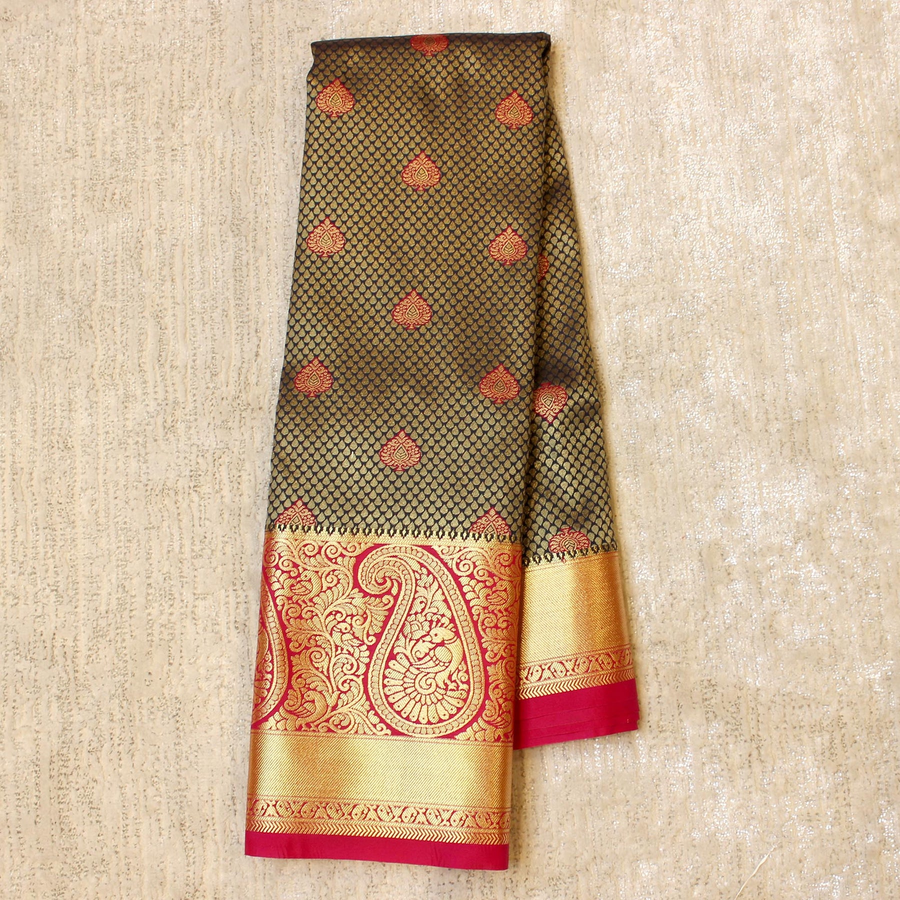 Hey!!! grab this beautiful Semi silk saree from the house of KUBERAN. This contrast zari work saree perfectly suits all the occasions and parties. This designer pallu with a broad border with a unique artwork of motifs gives a perfect rich look to the wearer. This saree is complemented with an unstitched designer blouse.