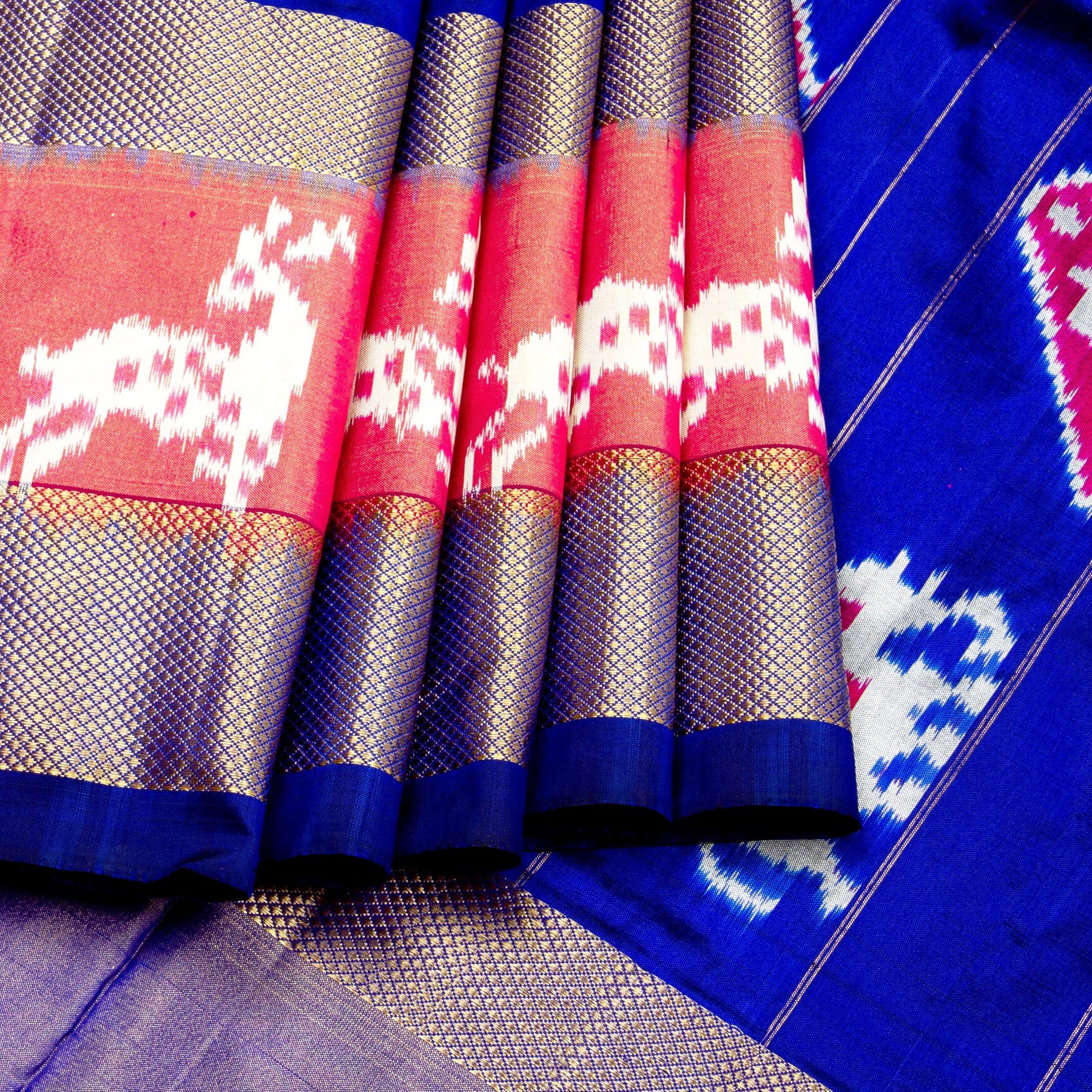 Hey!!! grab this beautiful Pochampally silk saree from the house of KUBERAN. This contrast zari handloom saree perfectly suits all the occasions and parties. This designer pallu and the border with a unique artwork of motifs give a perfect rich look to the wearer. This saree is complemented with an unstitched designer blouse, SILK MARK authenticated.