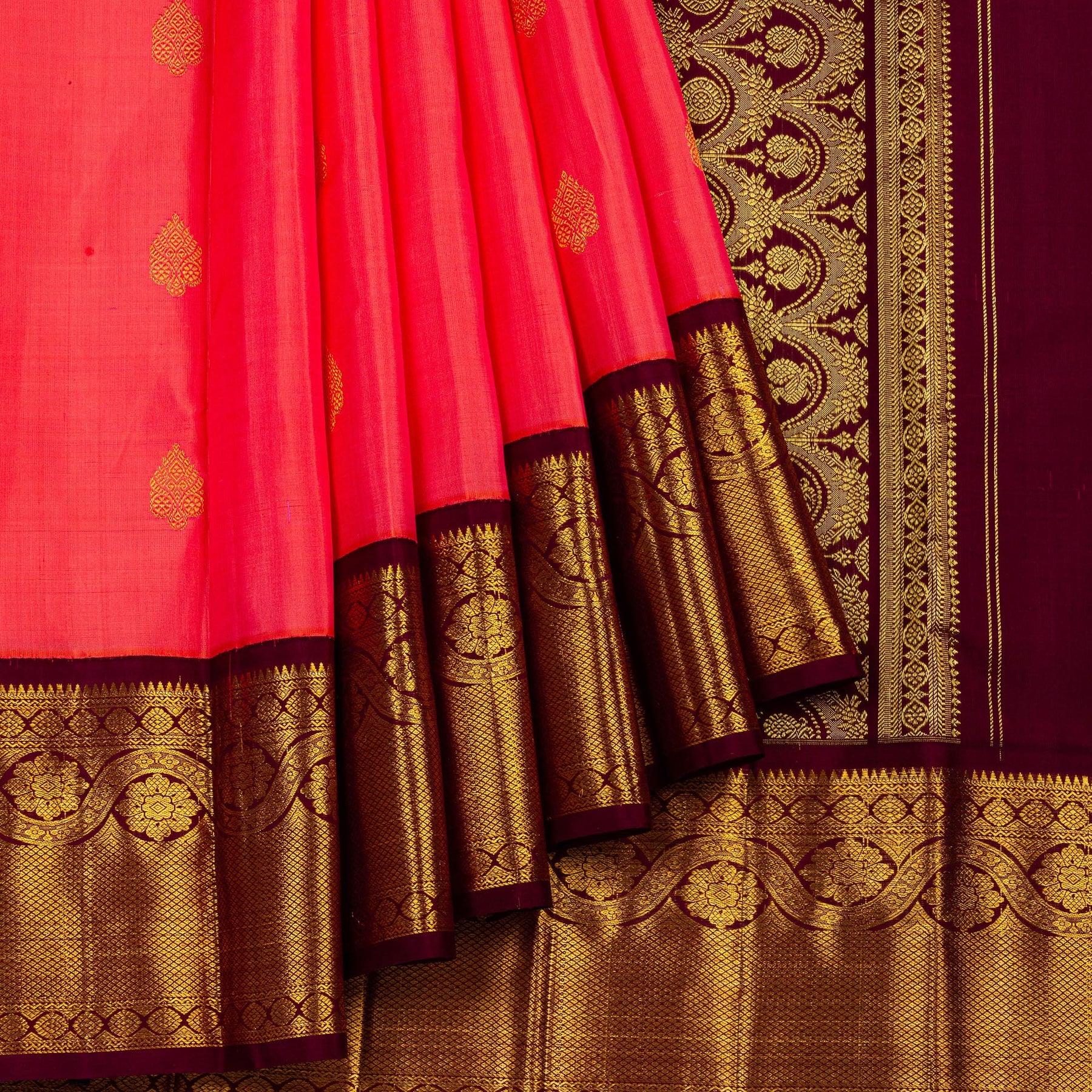 Kuberan Pink Brown Kanchipuram Silk Saree