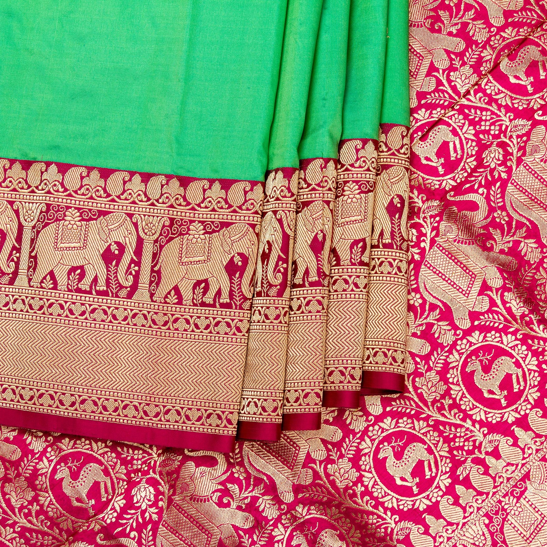 Hey!!!! Grab the latest collections of these exclusive banarasi saree from the house of kuberan. This saree is weaved with a designer motif and color contrast which will boost for all the occasions. This is complimented with unstitched blouse and SILK MARK authenticated