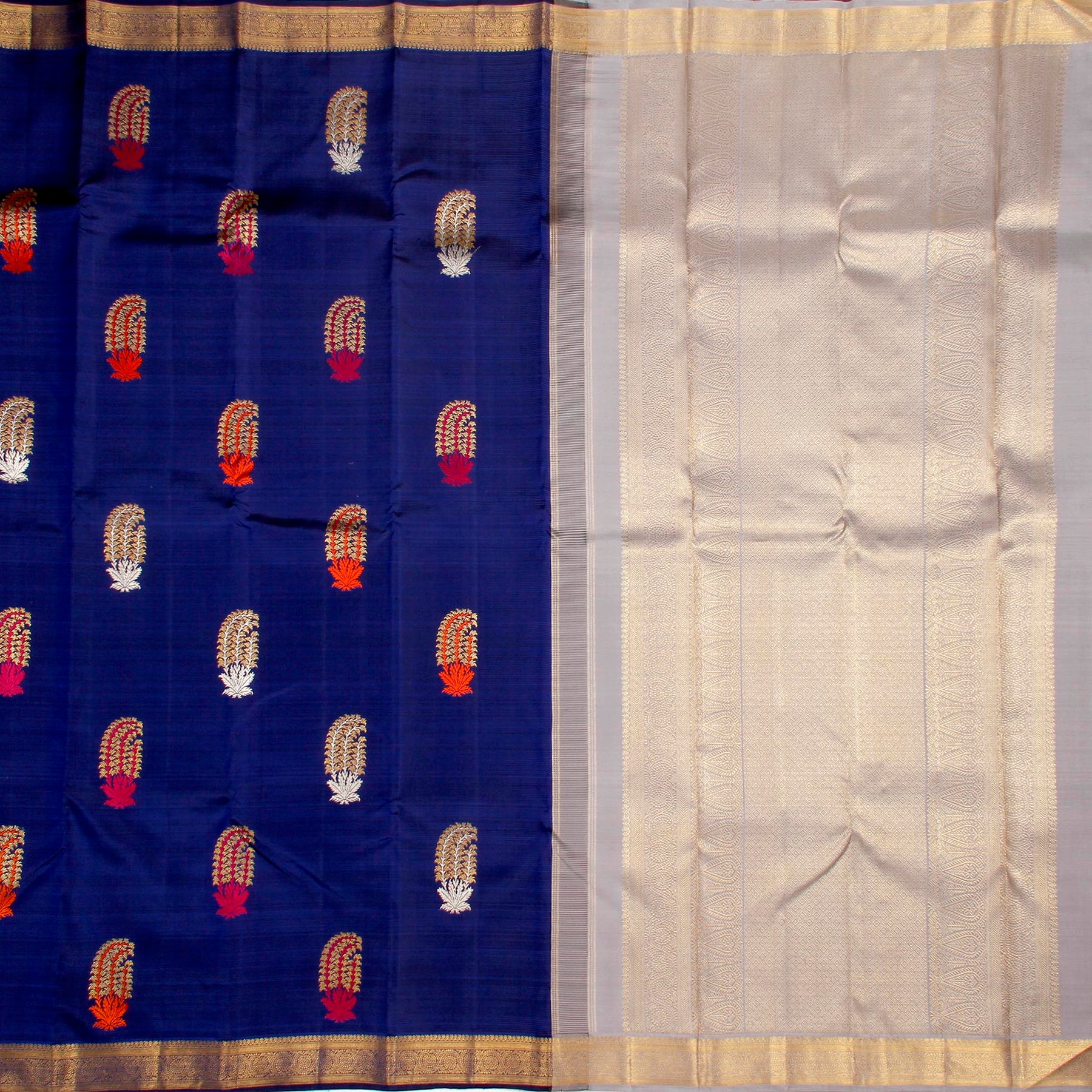 Kuberan Royal Blue Grey Kanchivaram Silk Saree