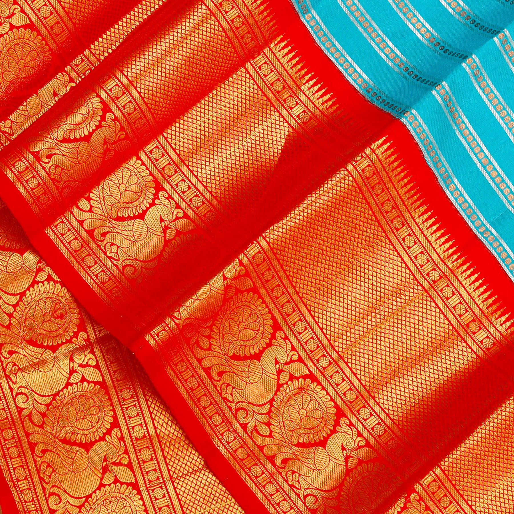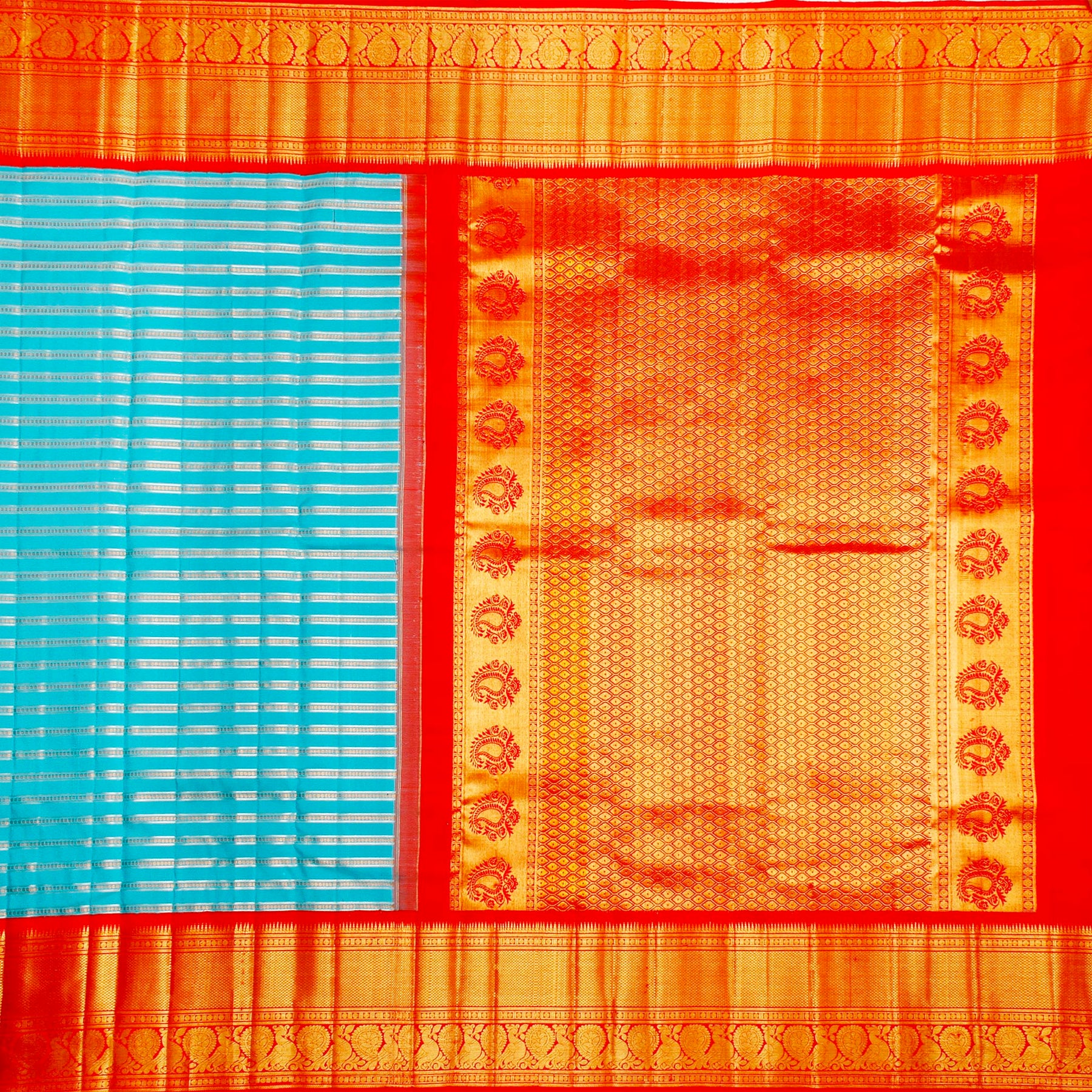 Kuberan Sky Blue Red Kanchivaram Silk Saree