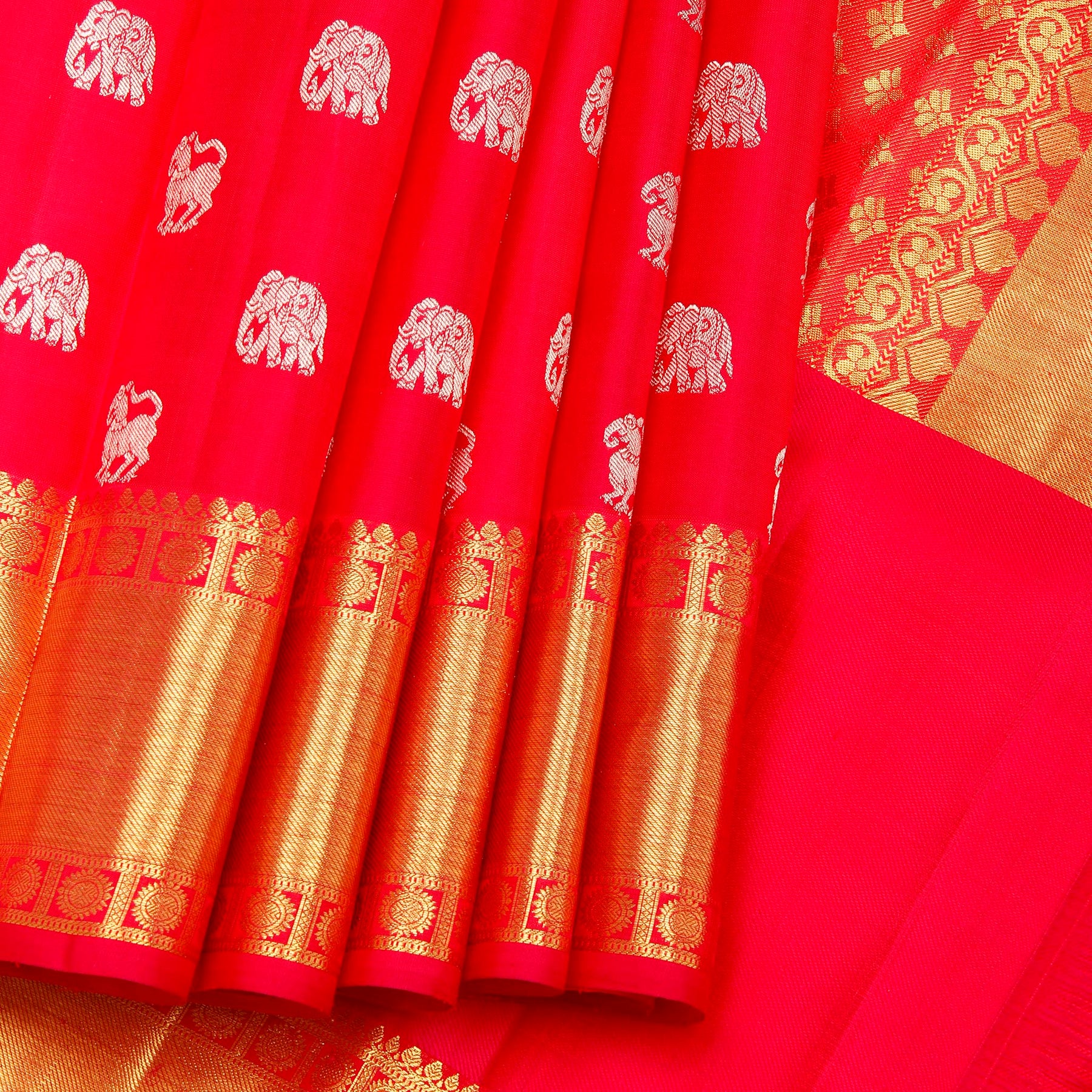 Hey!!!! Grab the latest collection of handloom Kanchipuram silk saree from the house of KUBERAN Silks. This is a Pure Kanchivaram silk with extensive color contrast and designer motifs....... This saree is complimented with traditional zari work over the saree..... which is getting to go for all the occasions. This saree has a beautiful unstitched blouse with SILK MARK authenticated.