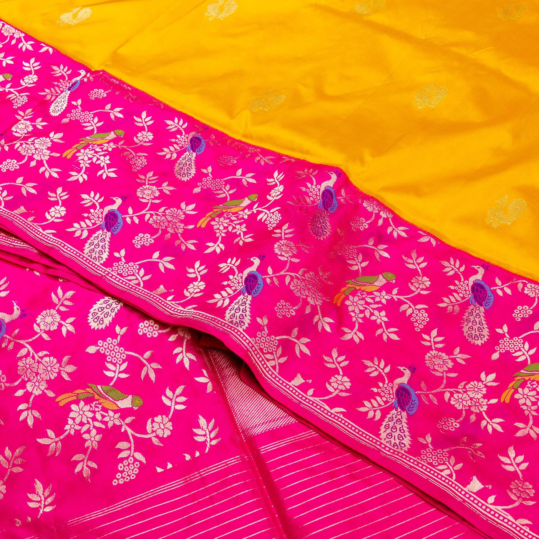 Hey!!!! Grab the latest collections of these exclusive banarasi saree from the house of kuberan. This saree is weaved with a designer motif and color contrast which will boost for all the occasions. This is complimented with unstitched blouse and SILK MARK authenticated