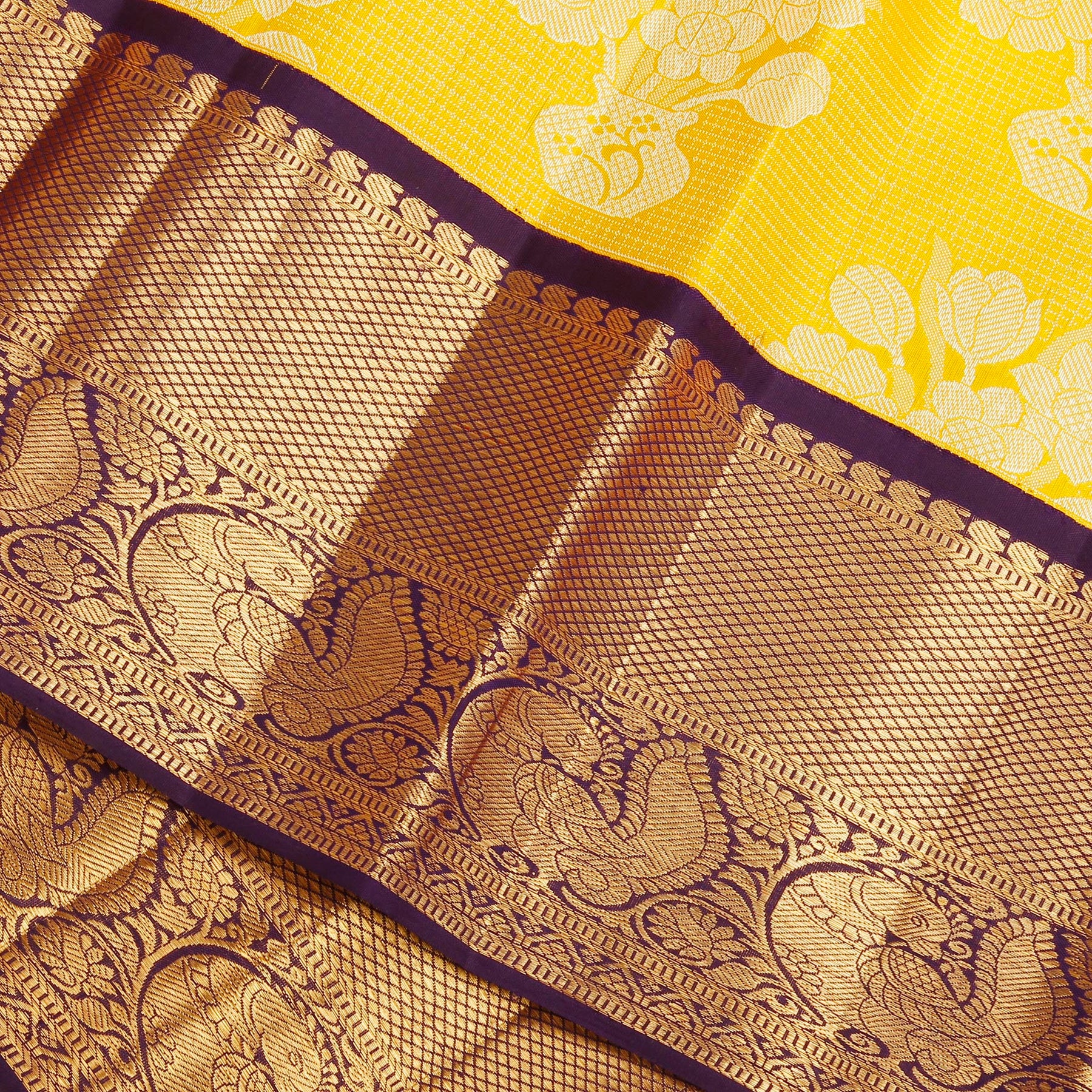Kuberan Yellow Purple Kanchivaram Silk Saree
