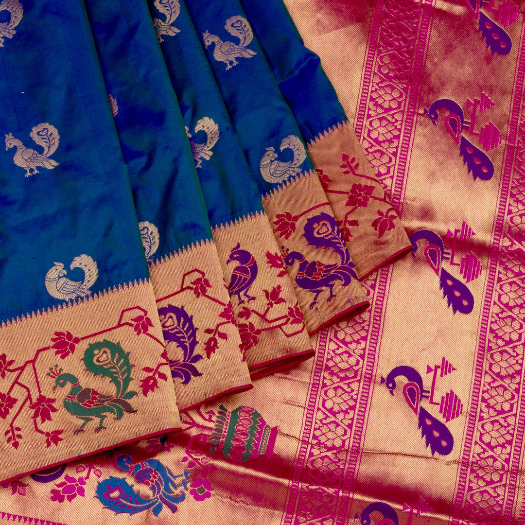 Kuberan Parrot Green Blue Khadi Banarasi Saree