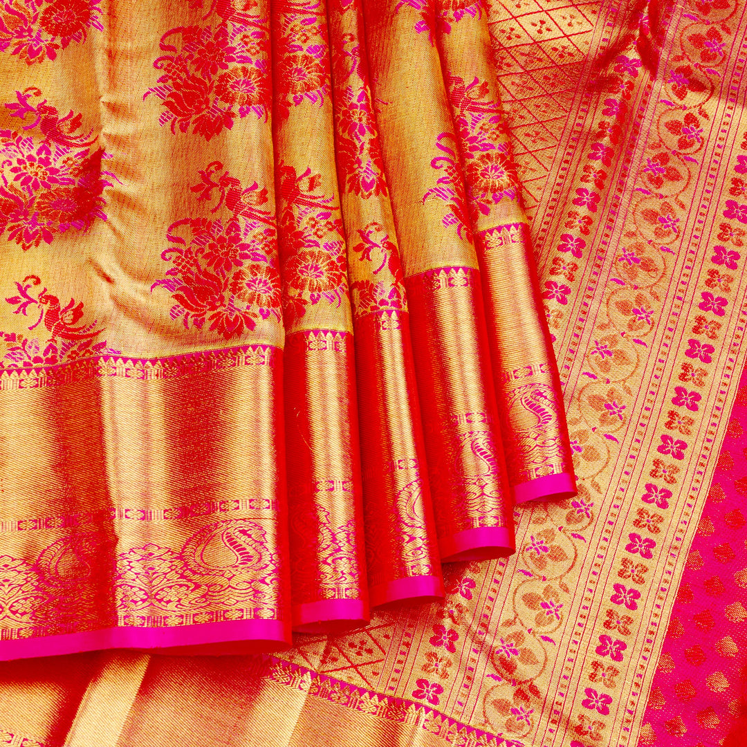 Kuberan Yellow Pink Pure Kanchivaram Silk Saree