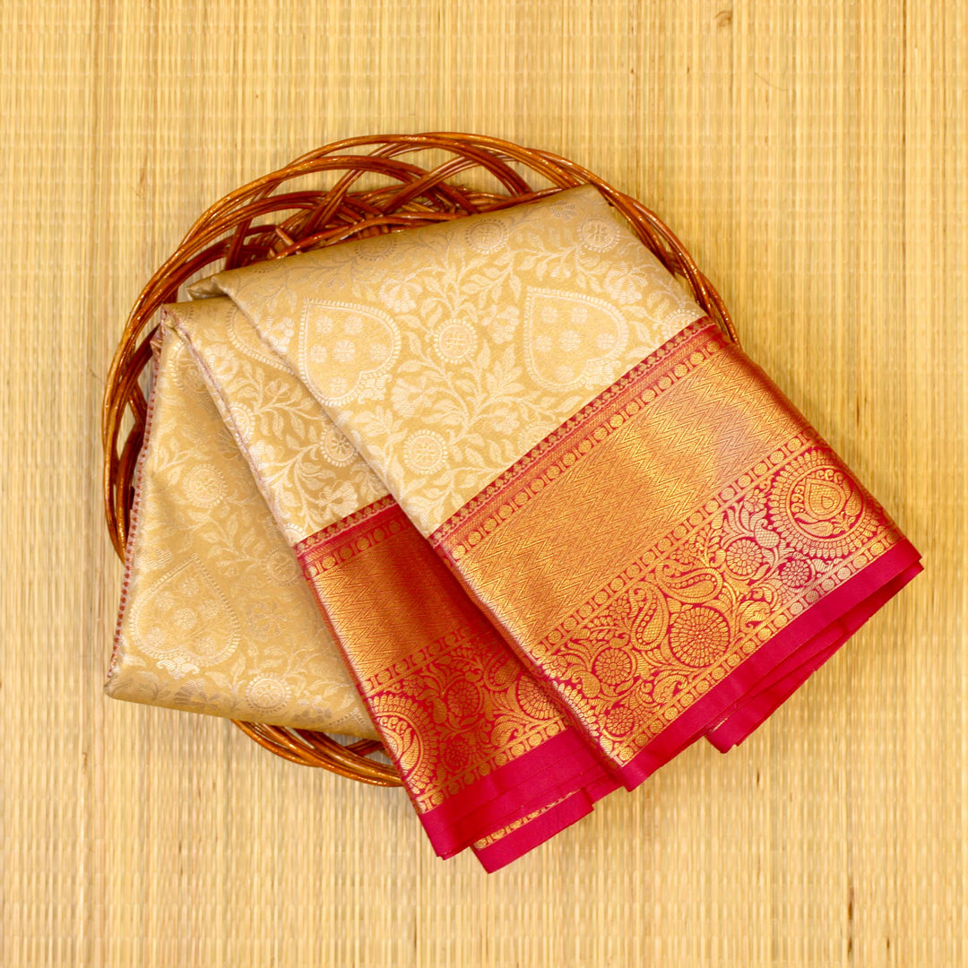 Kuberan Golden Red Pure Kanchivaram Silk Saree
