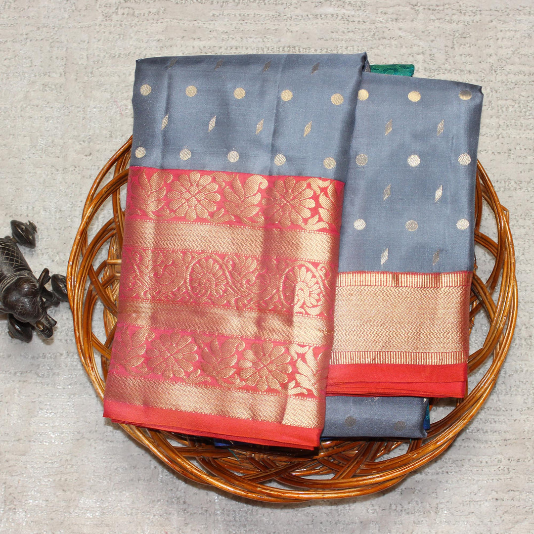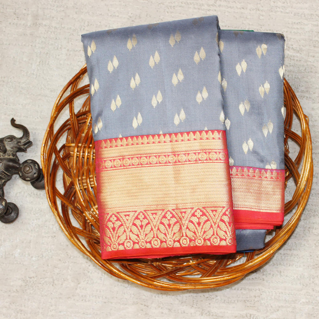 Kuberan Grey Red Pure Silk Saree