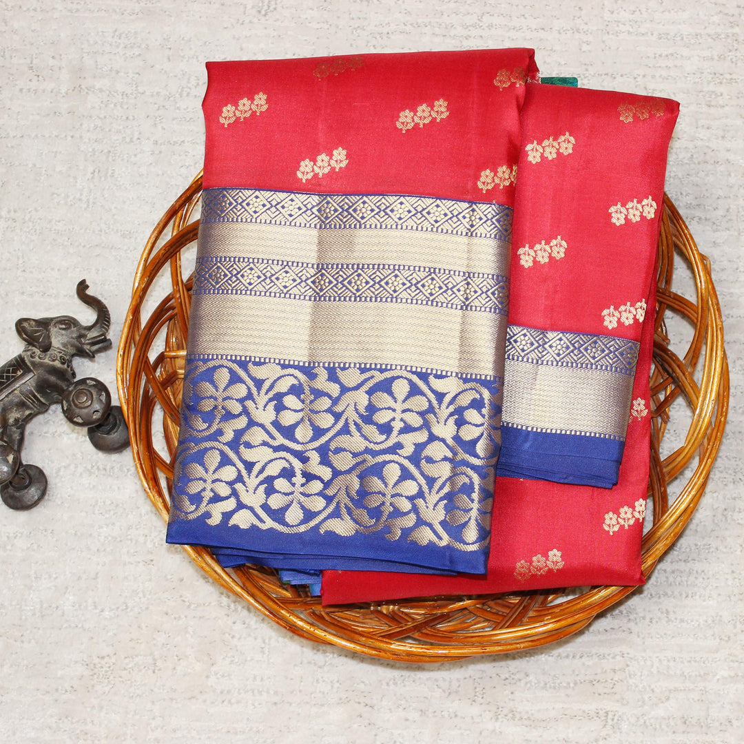 Kuberan Red Navy Blue Pure Silk Saree