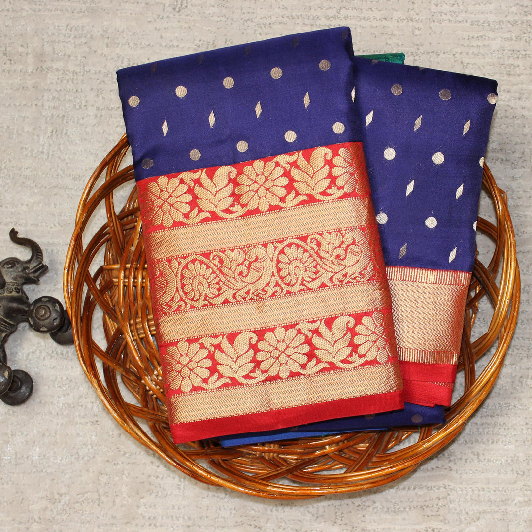 Kuberan Navy Blue Red Pure Silk Saree