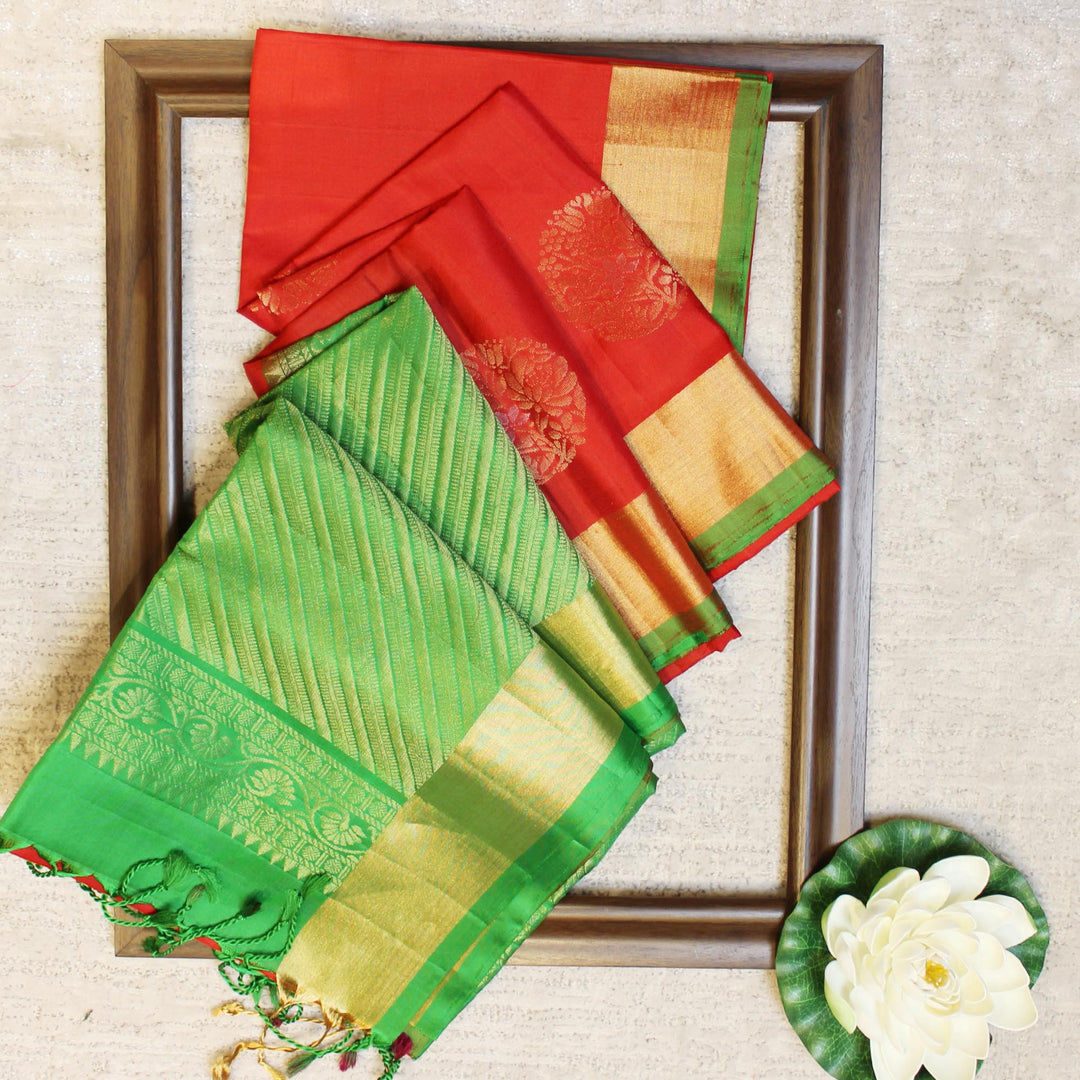Kuberan Red Green Pure Soft Silk Saree