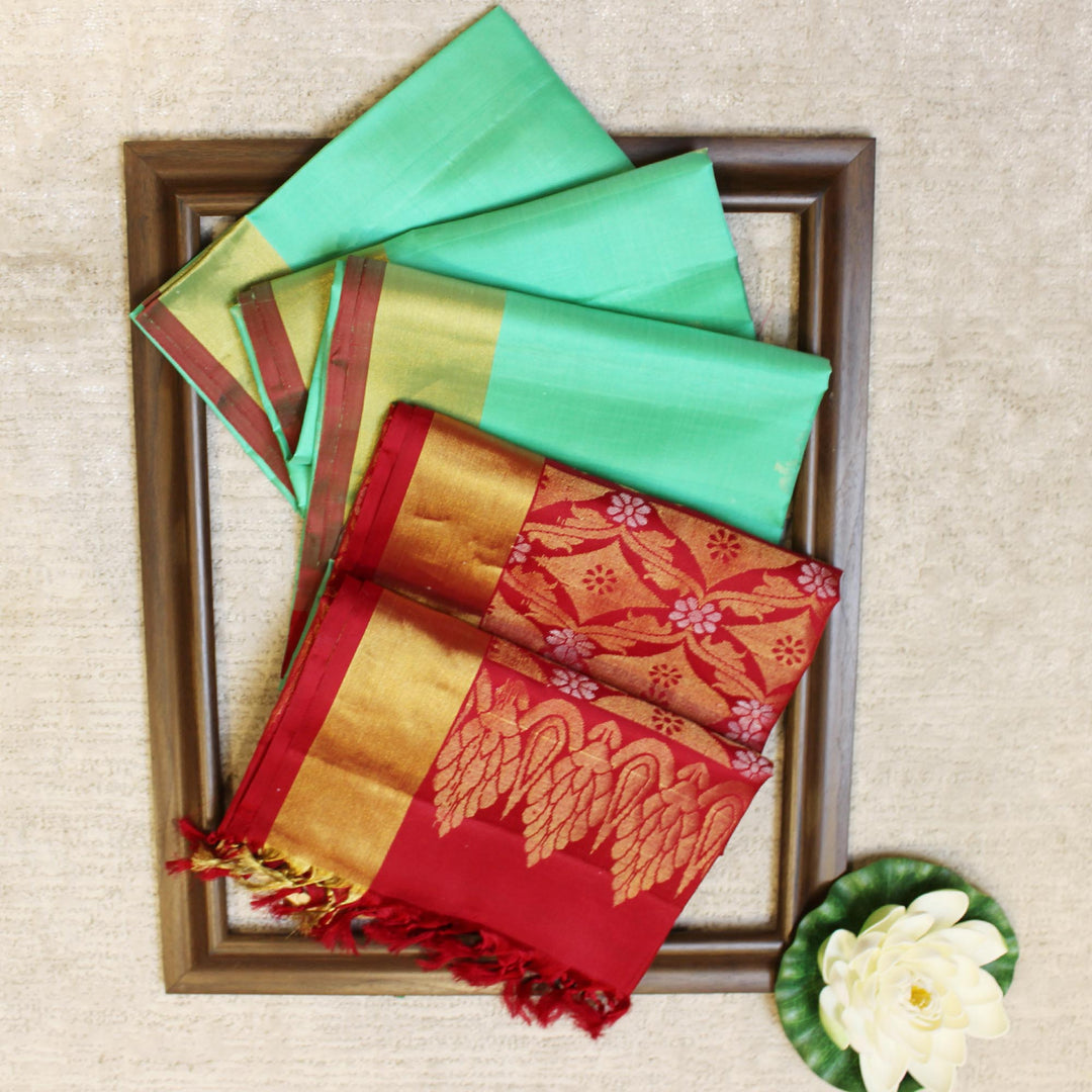 Kuberan Pista Red Pure Soft Silk Saree