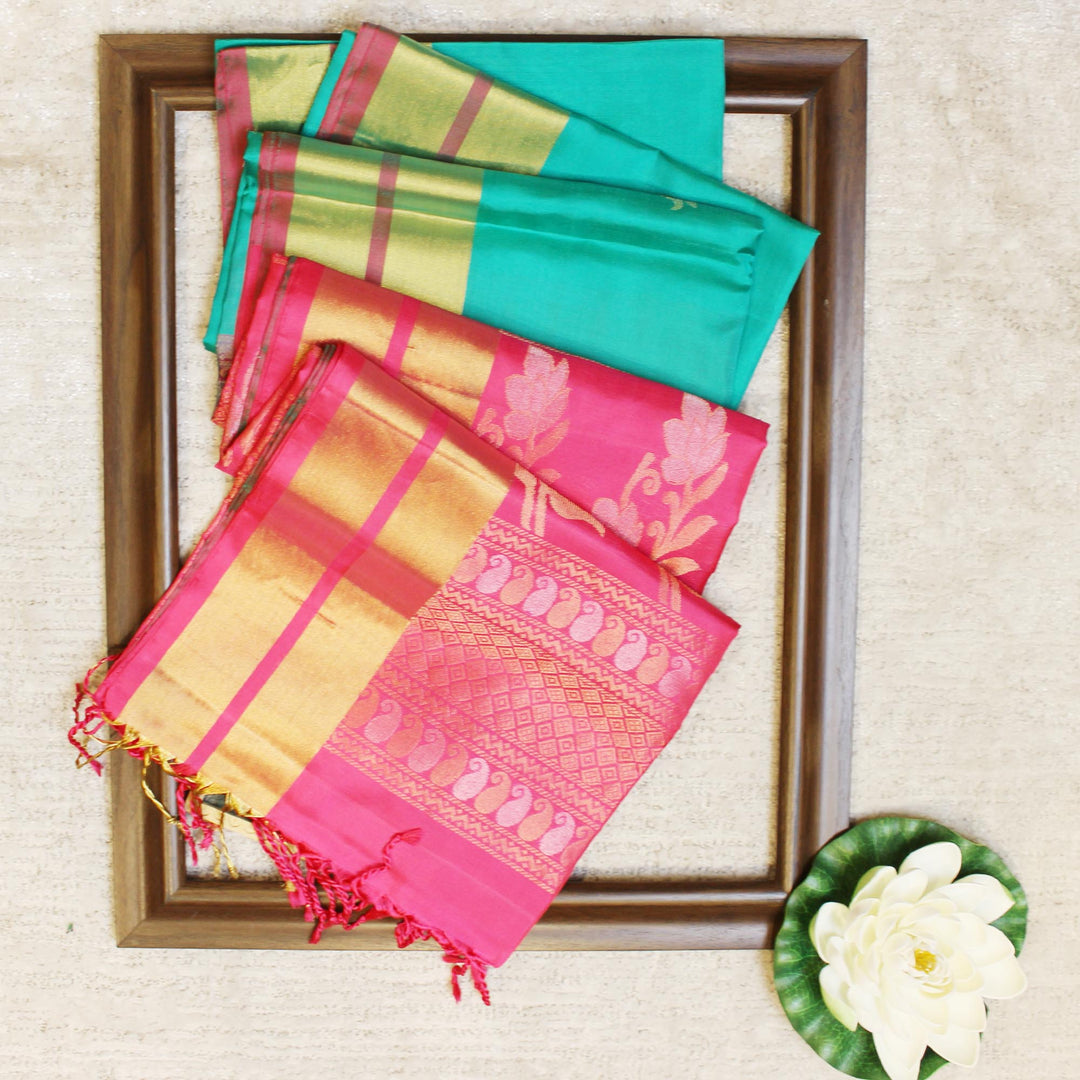 Kuberan Rama Green Pink Pure Soft Silk Saree
