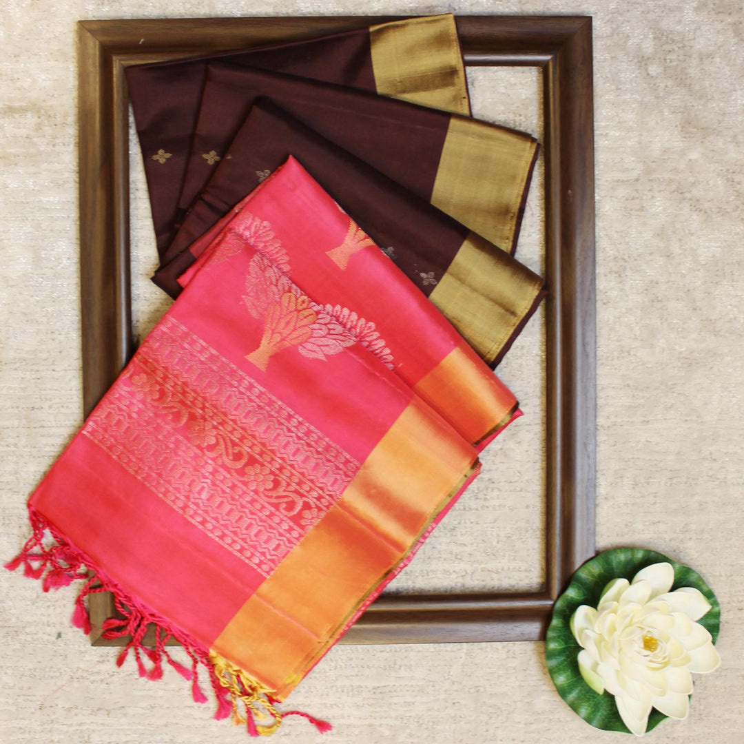 Kuberan Coffe Pink Soft Silk Saree