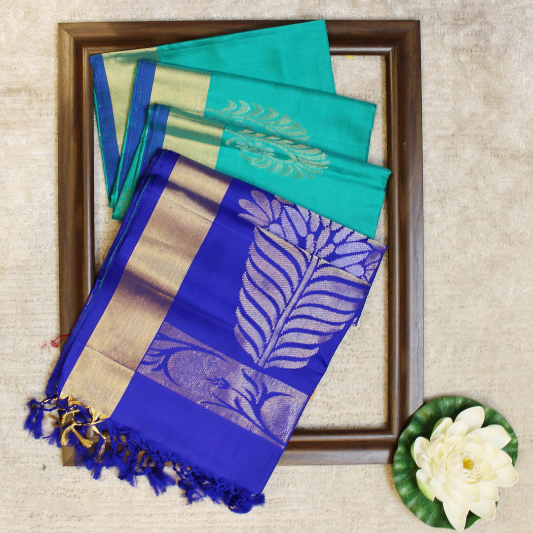 Kuberan Rama Green Royal Blue Pure Soft Silk Saree