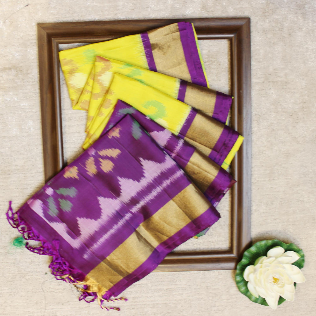 Kuberan Yellow Purple Pochampally Pure Soft Silk Saree