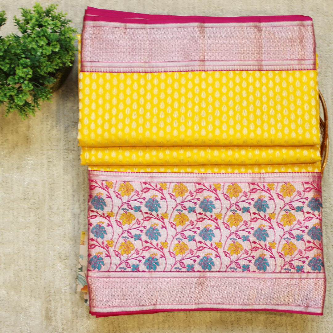 Kuberan Yellow Pink Pure Silk Saree