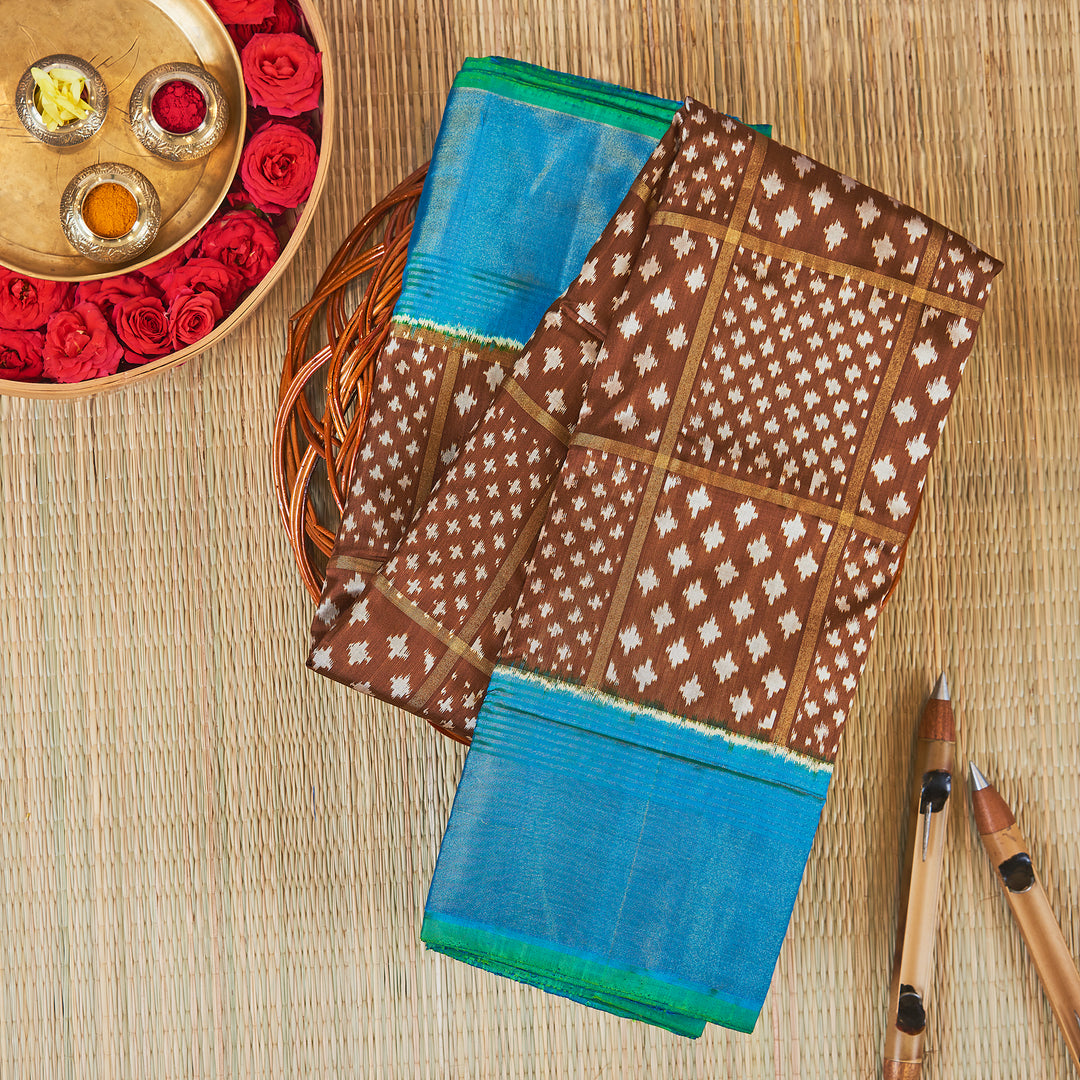 Kuberan Brown Blue Pochampally Silk Saree