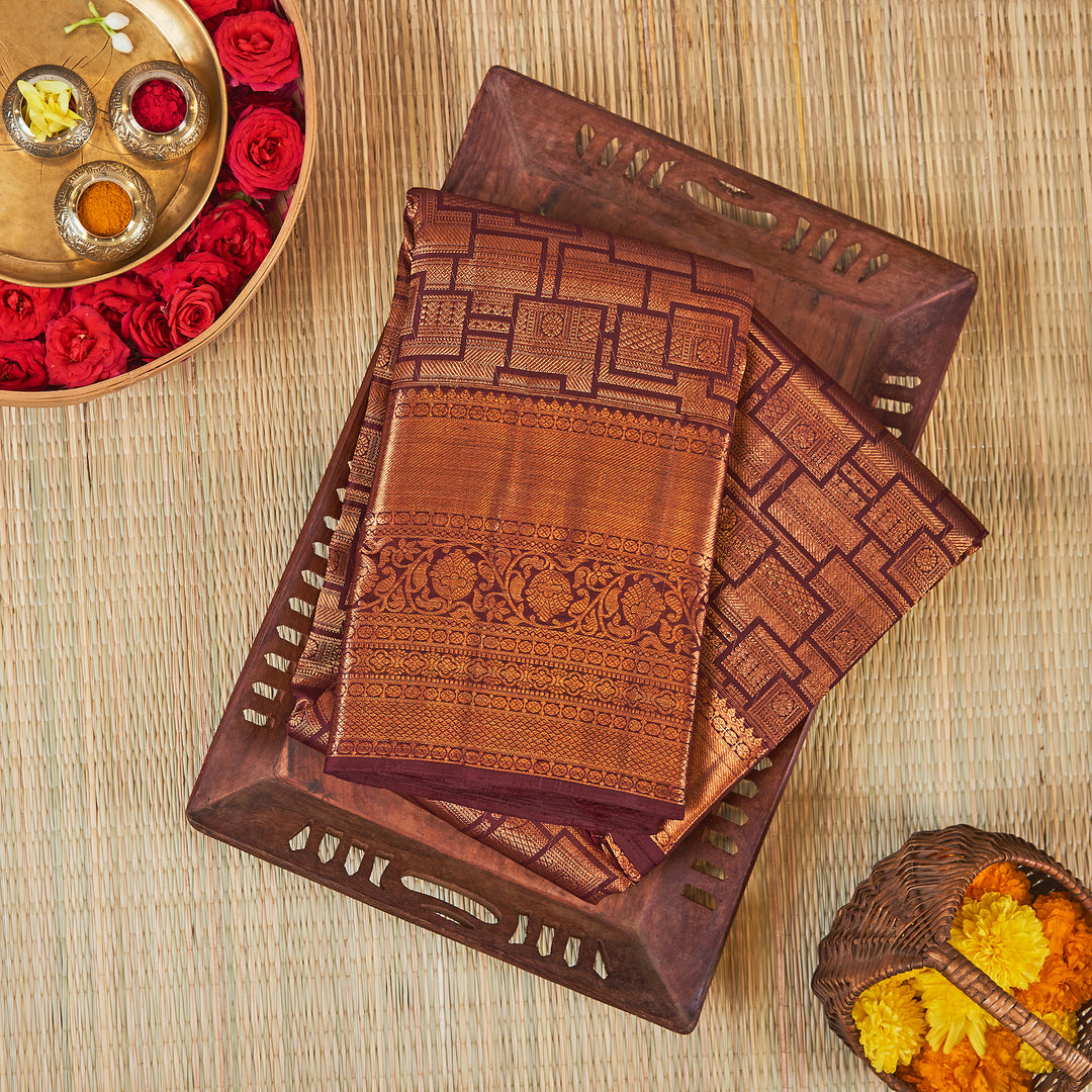 Kuberan Brown Copper Kanchivaram Silk Saree