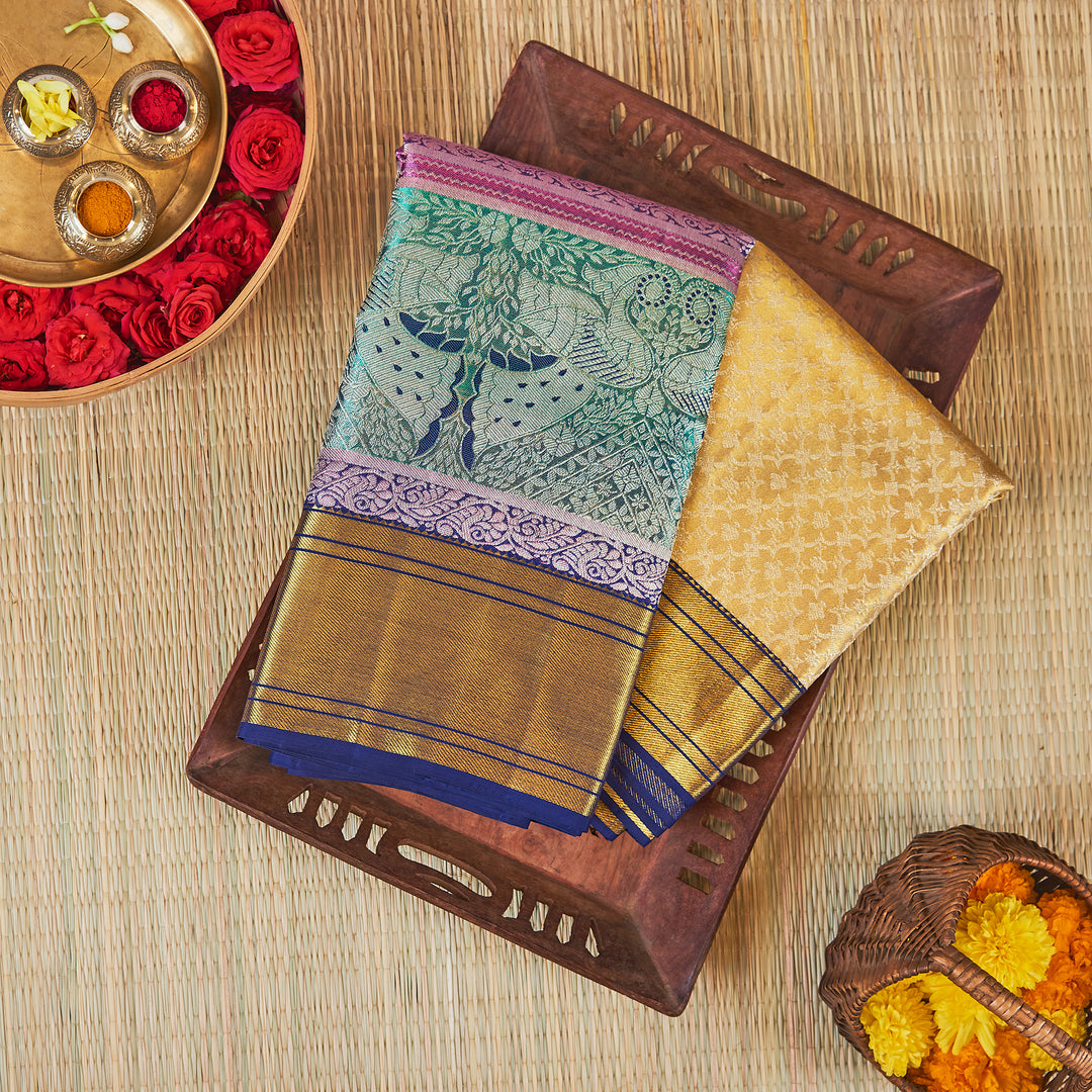 Kuberan Golden Multi Kanchivaram Silk Saree