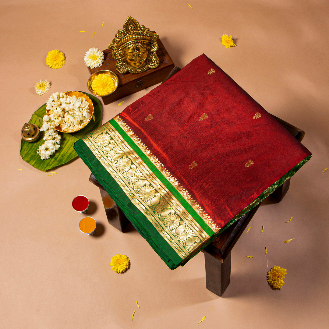 Kuberan Ruby Red Green 9 Yards Silk Saree