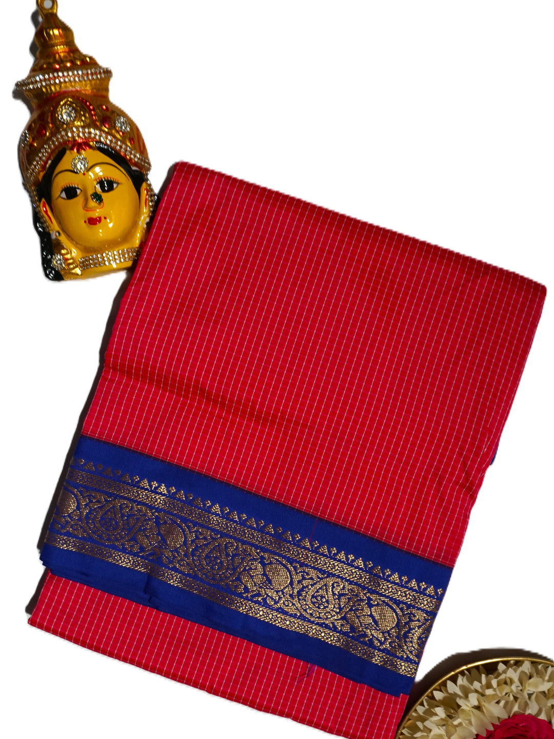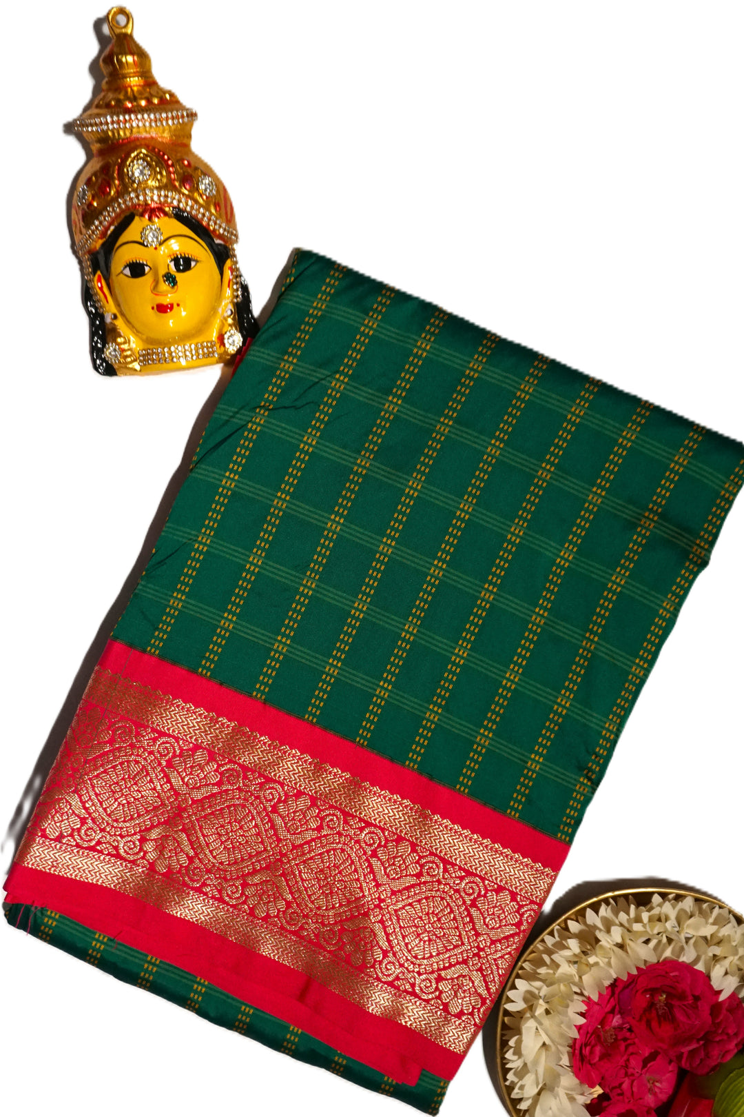 Kuberan Dark Green Red 9 Yards Silk Saree