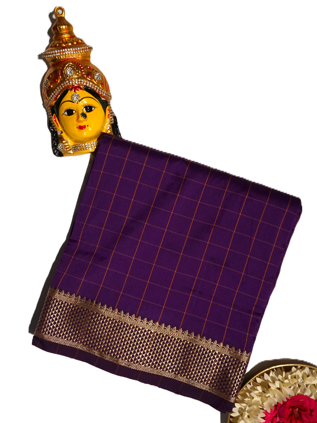 Kuberan Sap Green With Grape Purple 9 Yards Silk Saree