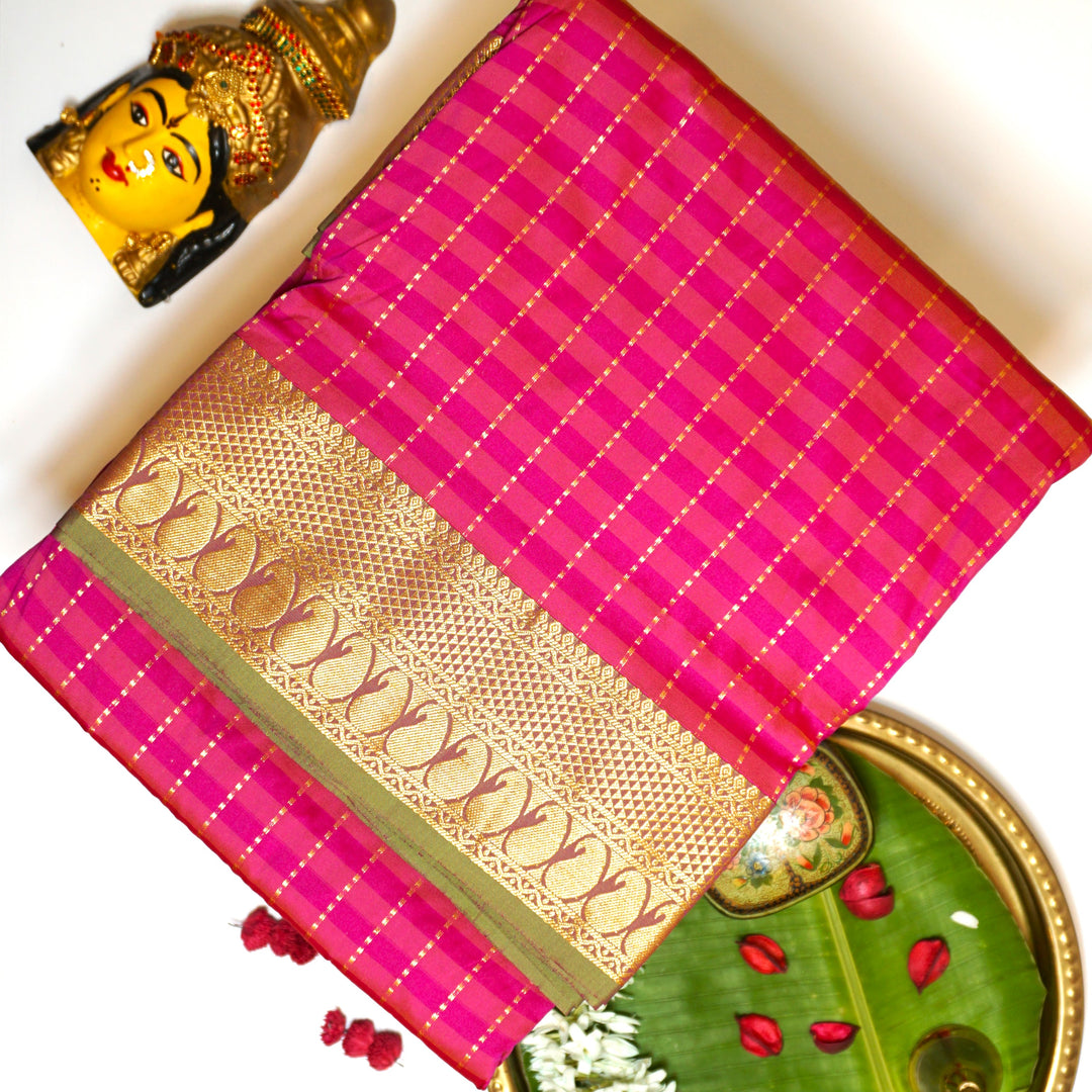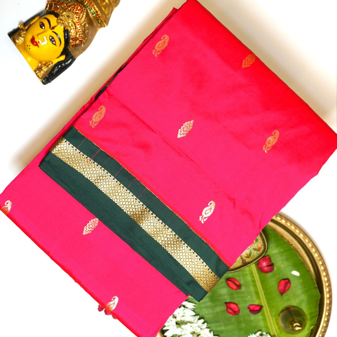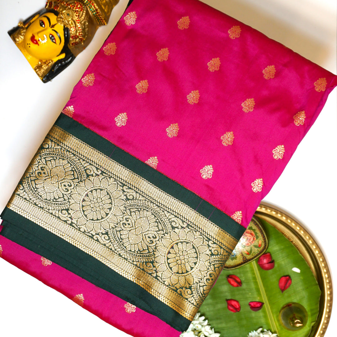 Kuberan Vibrant Green With Pink 9 Yards Silk Saree