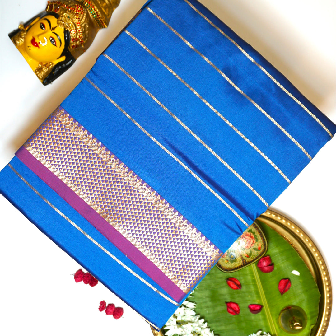 Kuberan Dark Teal With Rich Purple 9 Yards Silk Saree