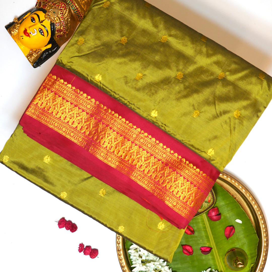 KUBERAN OLIVE GREEN 9 YARD SAREE
