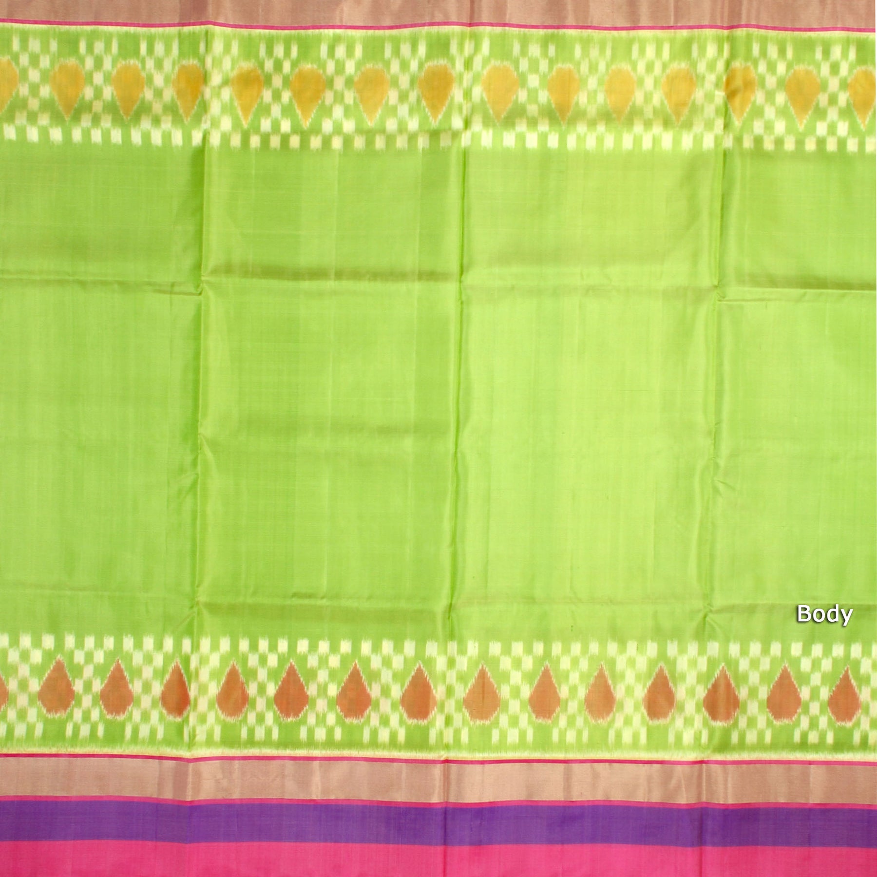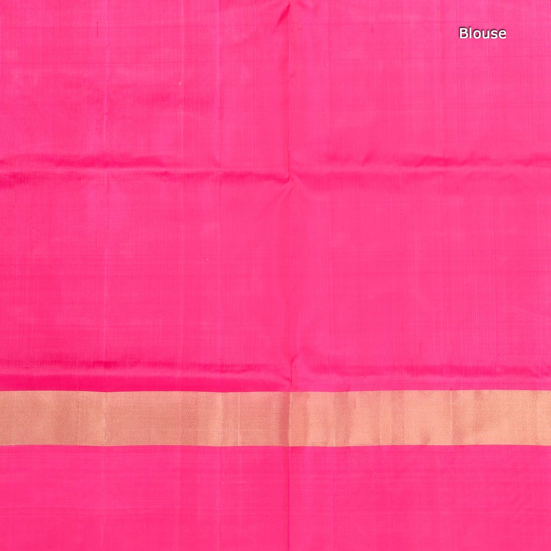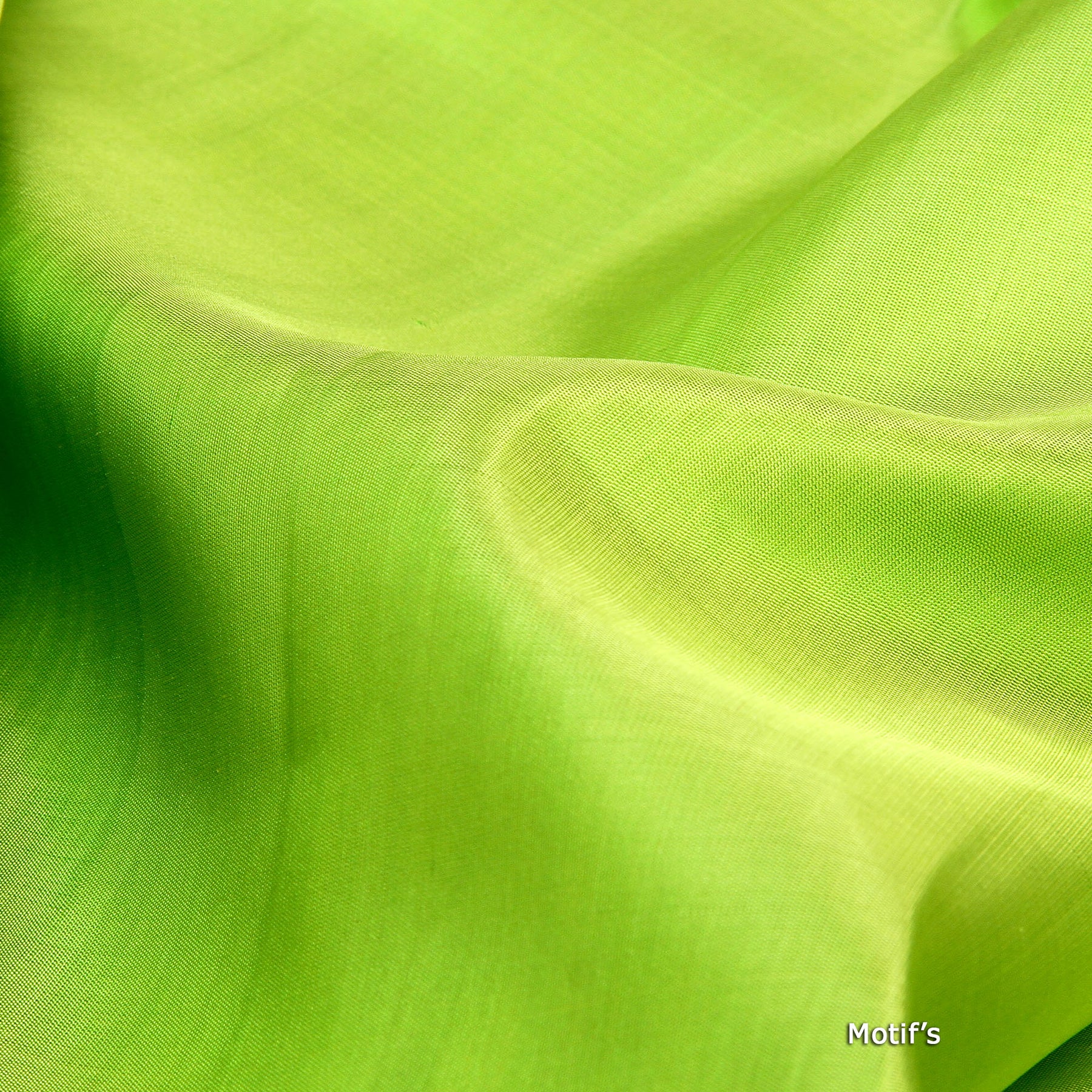 hey beautiful grab the latest collection of kuberan silks.This designer piece soft pure silk saree.This parrot green with all over designer motif that has pink rich pallu.This saree comes with a beautiful pink blouse.This saree comes with a SILK MARK authenticated.