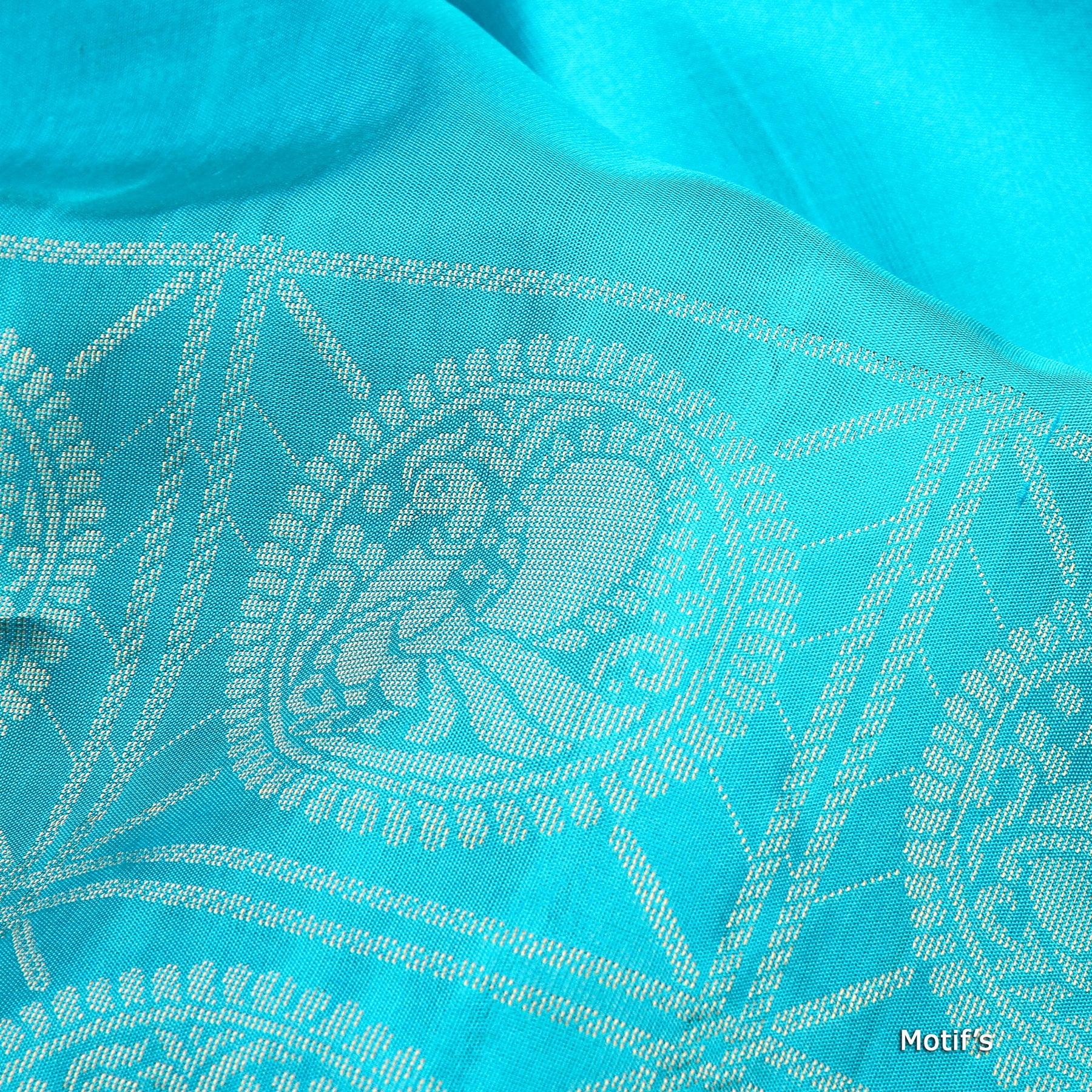 hey beautiful grab the latest collection of kuberan silks.This designer piece soft pure silk saree.This sky blue with all over designer motif skirt that has pink rich pallu.This saree comes with a beautiful purple blouse.This saree comes with a SILK MARK authenticated.
